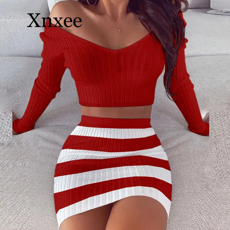 Autumn Winter Knitted Sweater Dress Women Elegant Long Sleeve Striped Ladies Dresses Korean Casual Midi Woman Dress Vestidos
