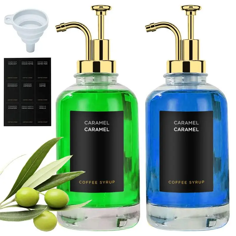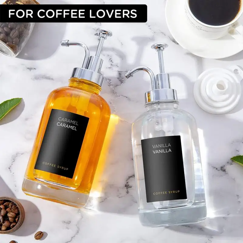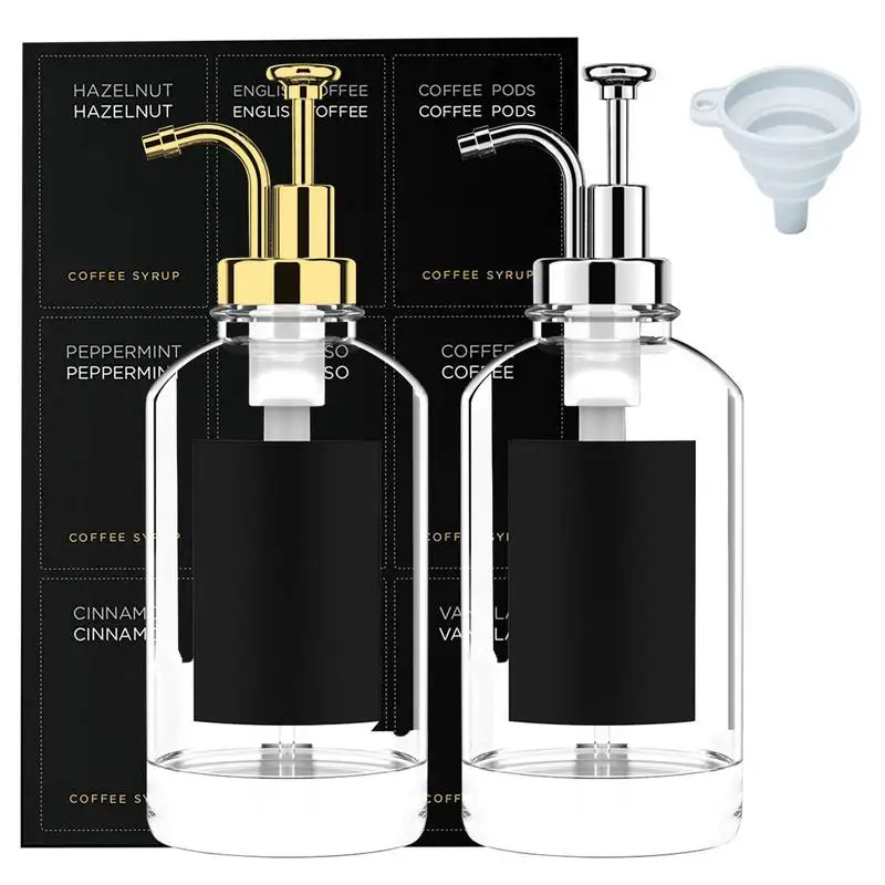 2 Pcs Coffee Syrup Dispenser Set Clear Glass Pump Bottle Soap Dispenser Minimalist Coffee Syrup Container 2 Pump Funnel 9 Labels - Купить с бесплатной доставкой