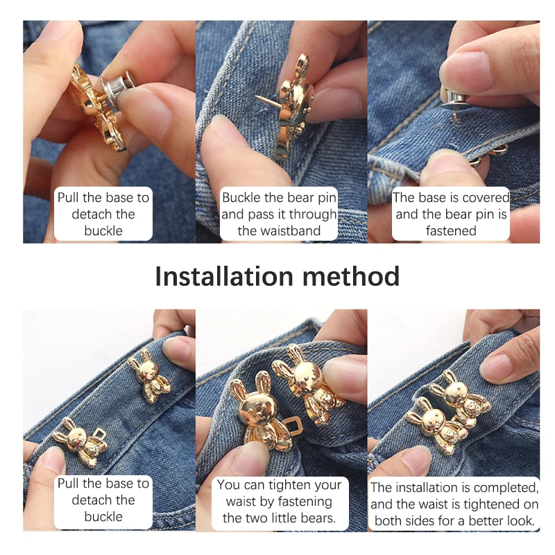 "2 Pcs Rabbit Shape Waist Buckle No-Sewing Adjustment Jeans Tighten Button Detachable Closing Artifact Invisible Jeans Button" * Buy Now With Free Shipping Just For $1