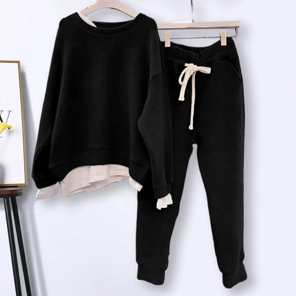 "2 Pcs/Set Stylish Drawstring Sweatshirt Sweatpants Set Fake Two-piece Adjustable Waist Sweatshirt Sweatpants Set Warm" * Buy Now With Free Shipping Just For $5