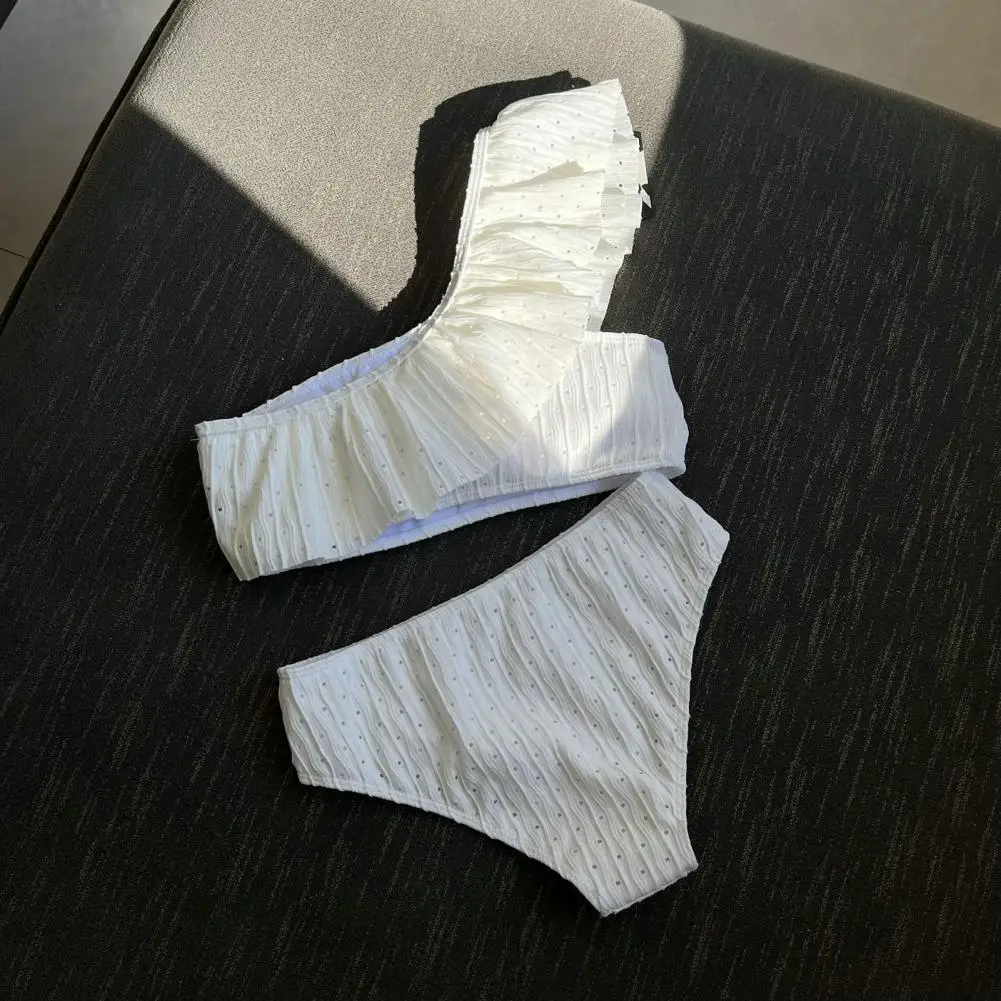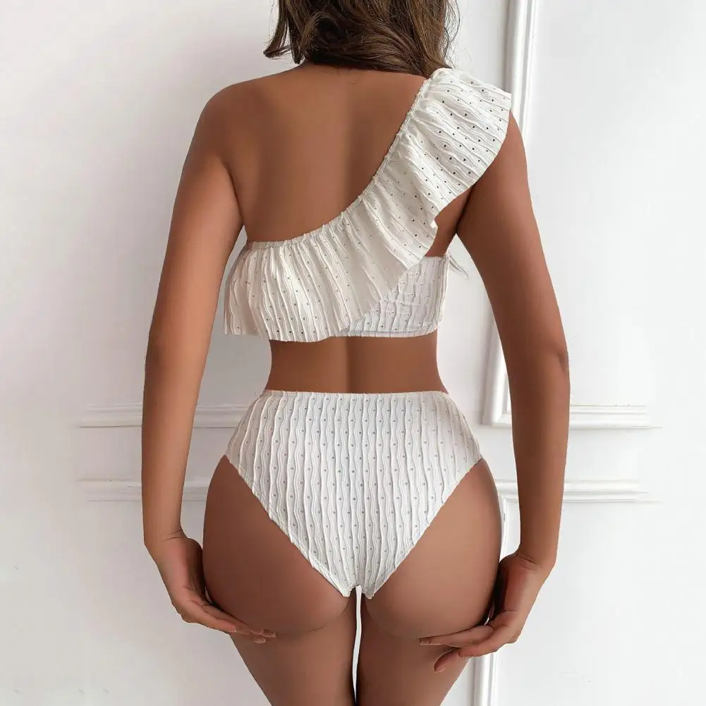 2 Pcs/Set Women Bikini Set Solid Color Ruffle One Shoulder High Waist Quick Drying Swimming Padded Ribbed Beach Swimwear Water - Купить с бесплатной доставкой