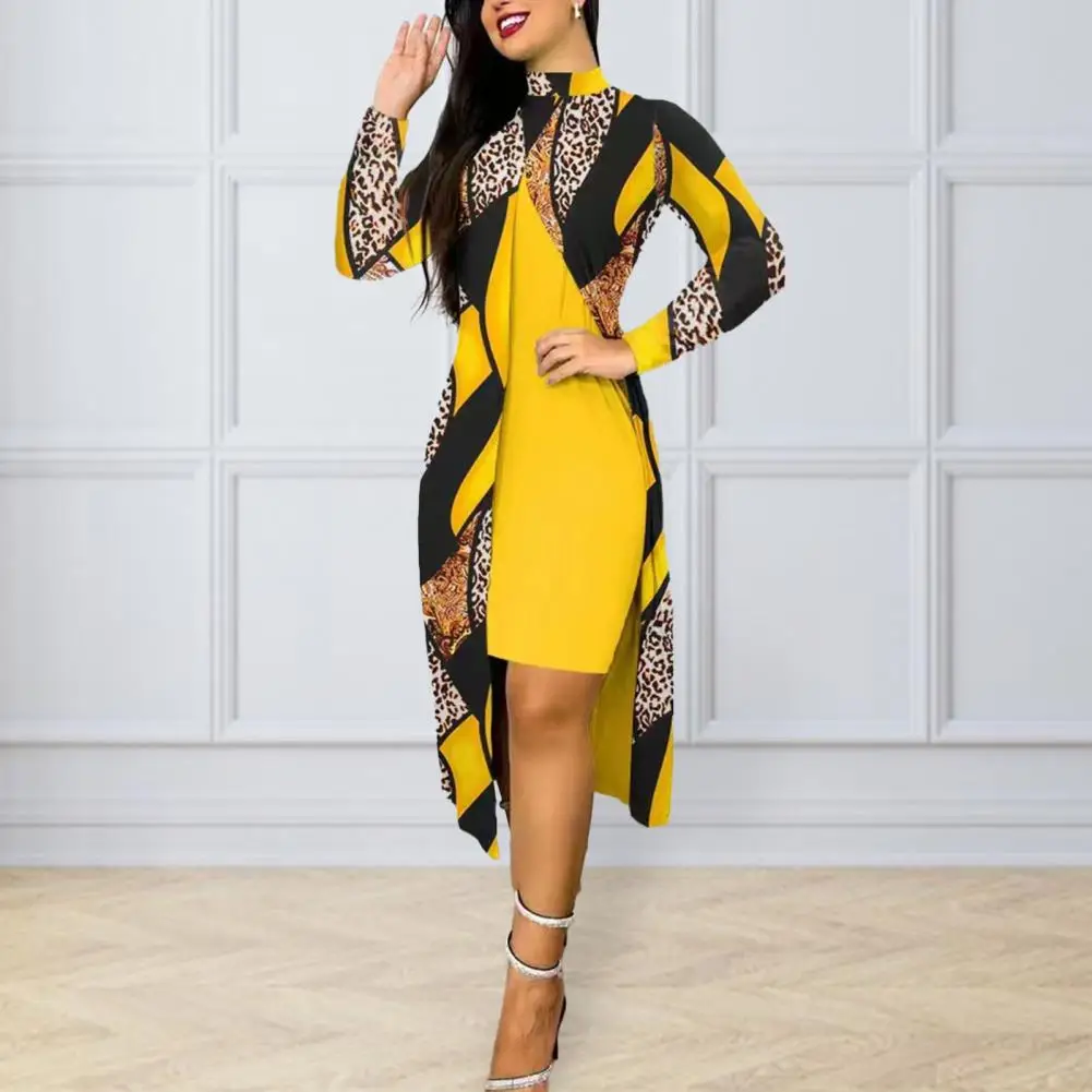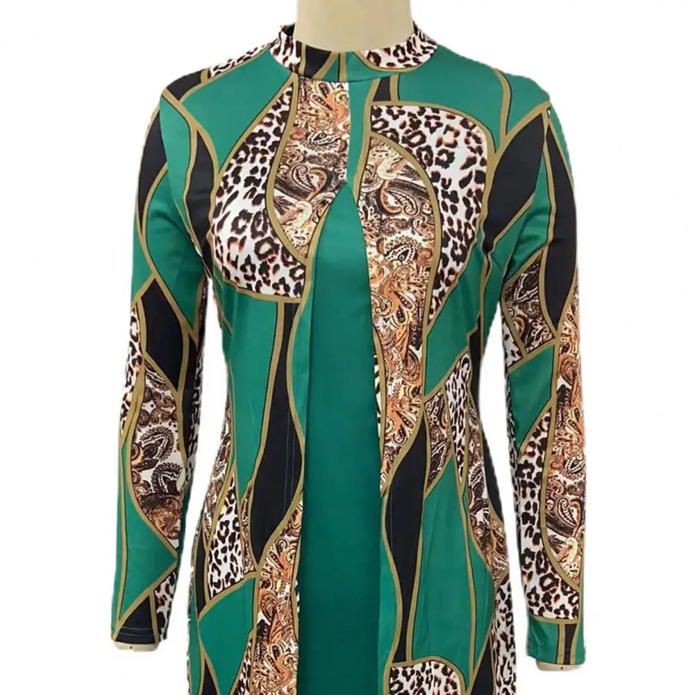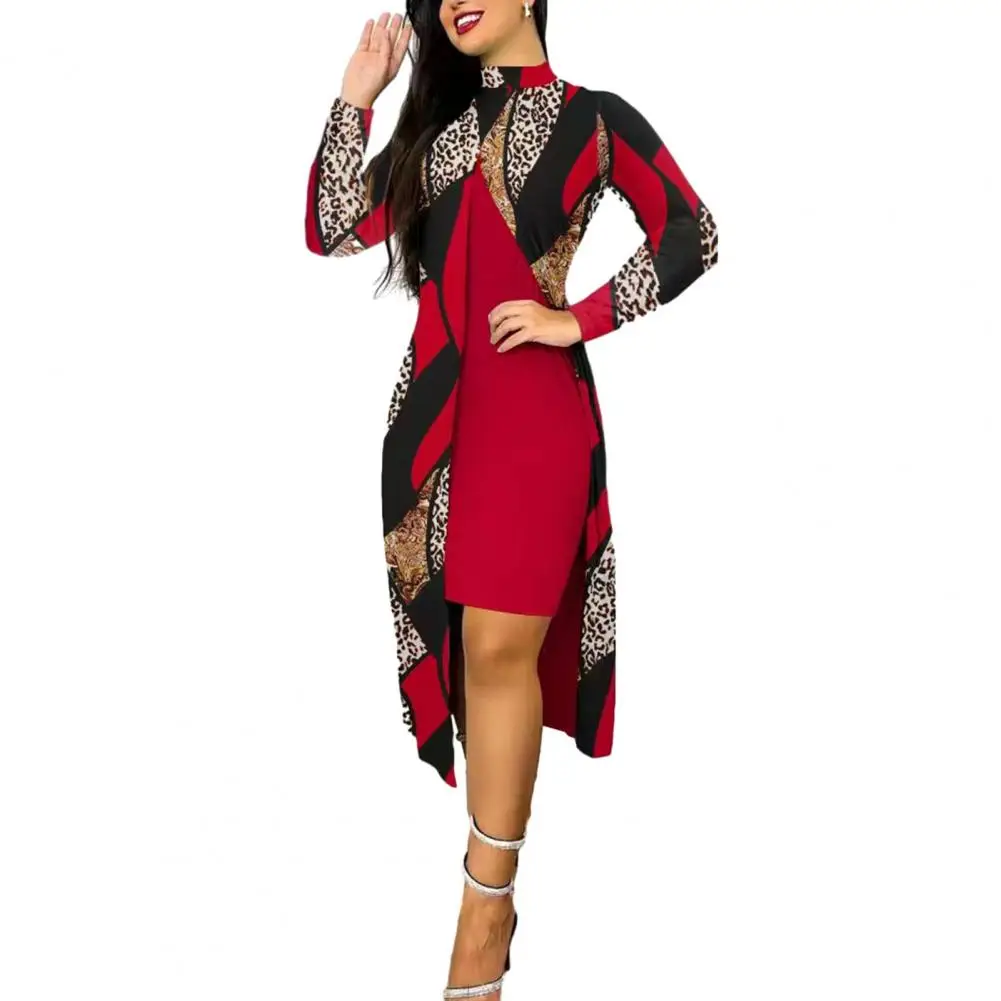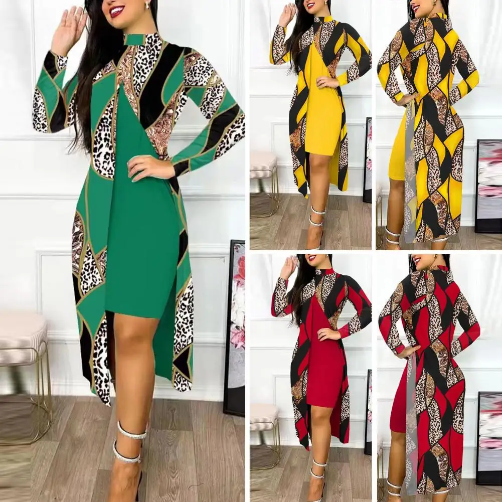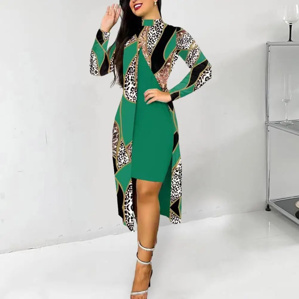 TsOrFBoTHere you can buy 2 Pcs/Set Women Solid Color Slim Fit Bodycon Dress Geometric Print Contrast Color Long Sleeve Front Split Soft Midi Cover Up Set with free delivery to your post office.