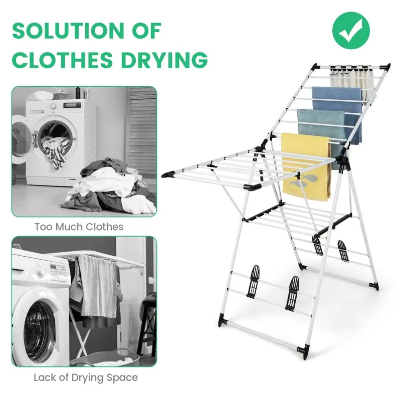 DZkHoJWhGSЗдесь вы сможете купить 2-Tier Clothes Drying Racks for Laundry with Height-Adjustable Gullwings Household Floor Drying Rack Stall Display Stand с бесплатной доставкой до вашего почтового отделения.