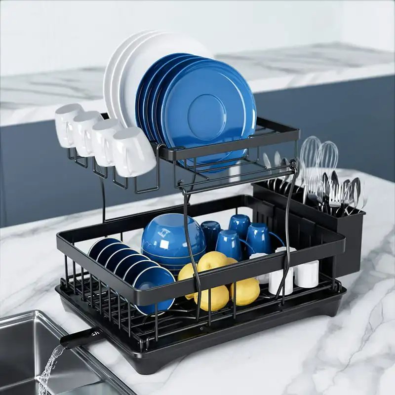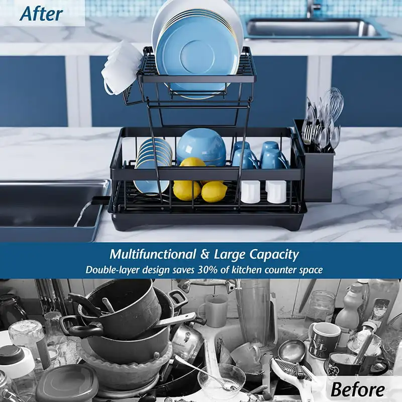 "2 Tier Dish Racks for Kitchen Counter, Dish Drying Rack with Dish Drainer, Stainless Steel Dish Rack Drain Set with Utensil Cups" * Buy Now With Free Shipping Just For $29
