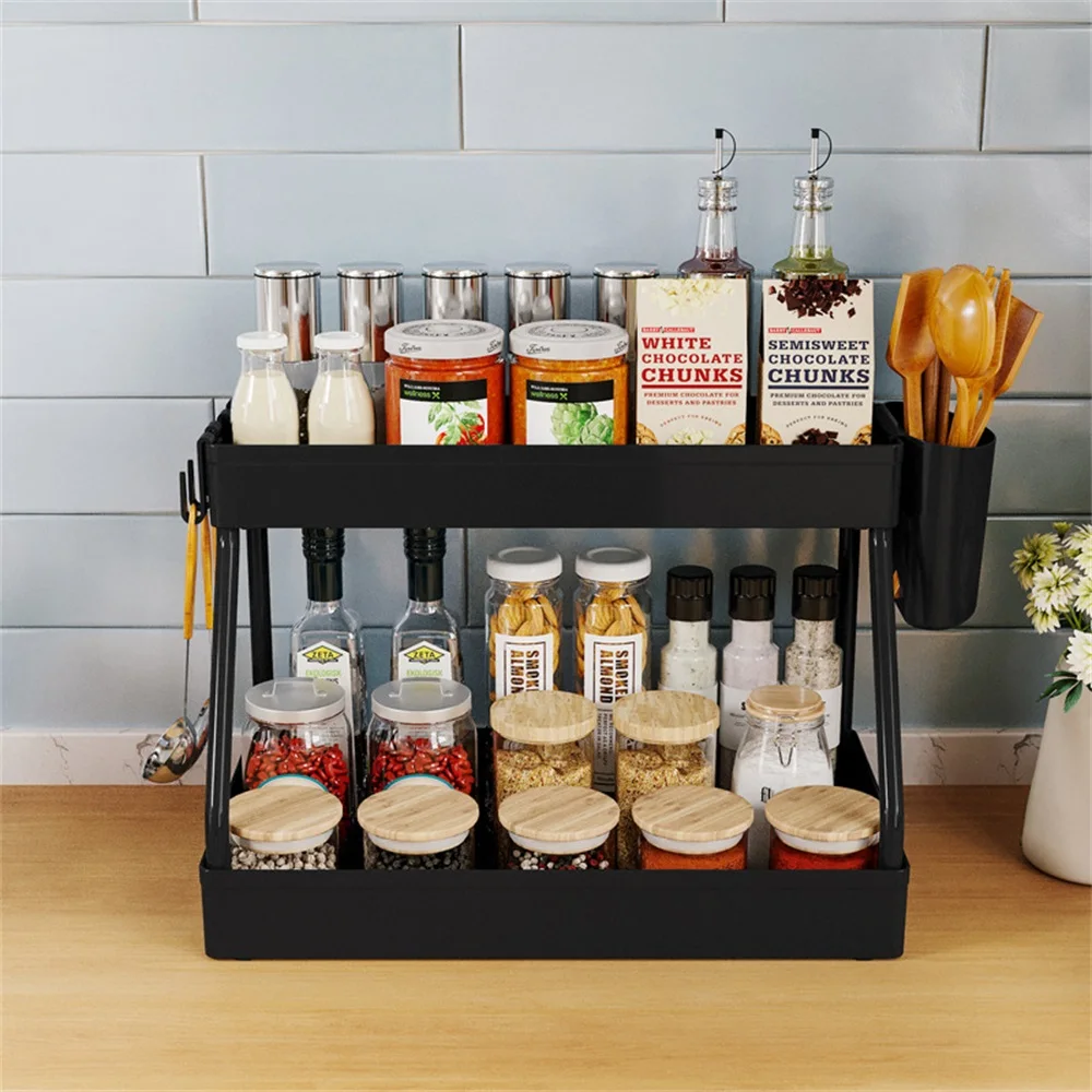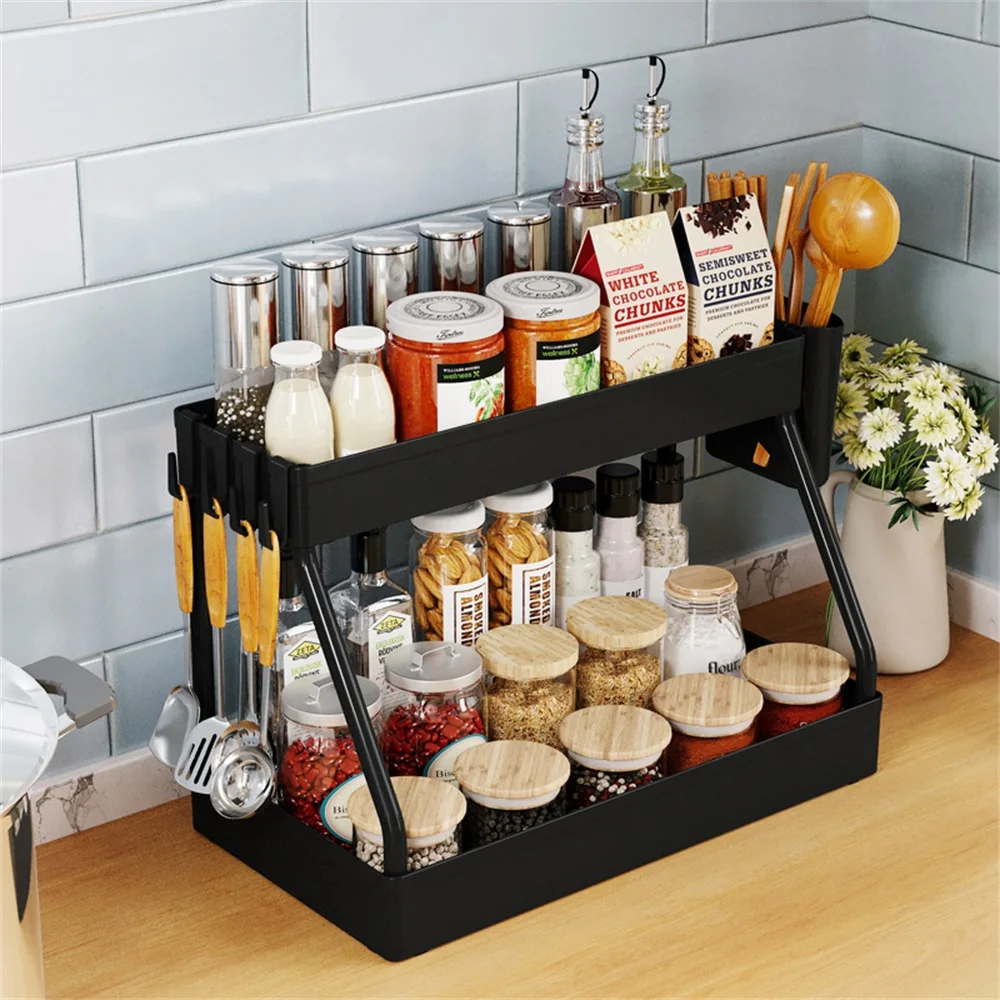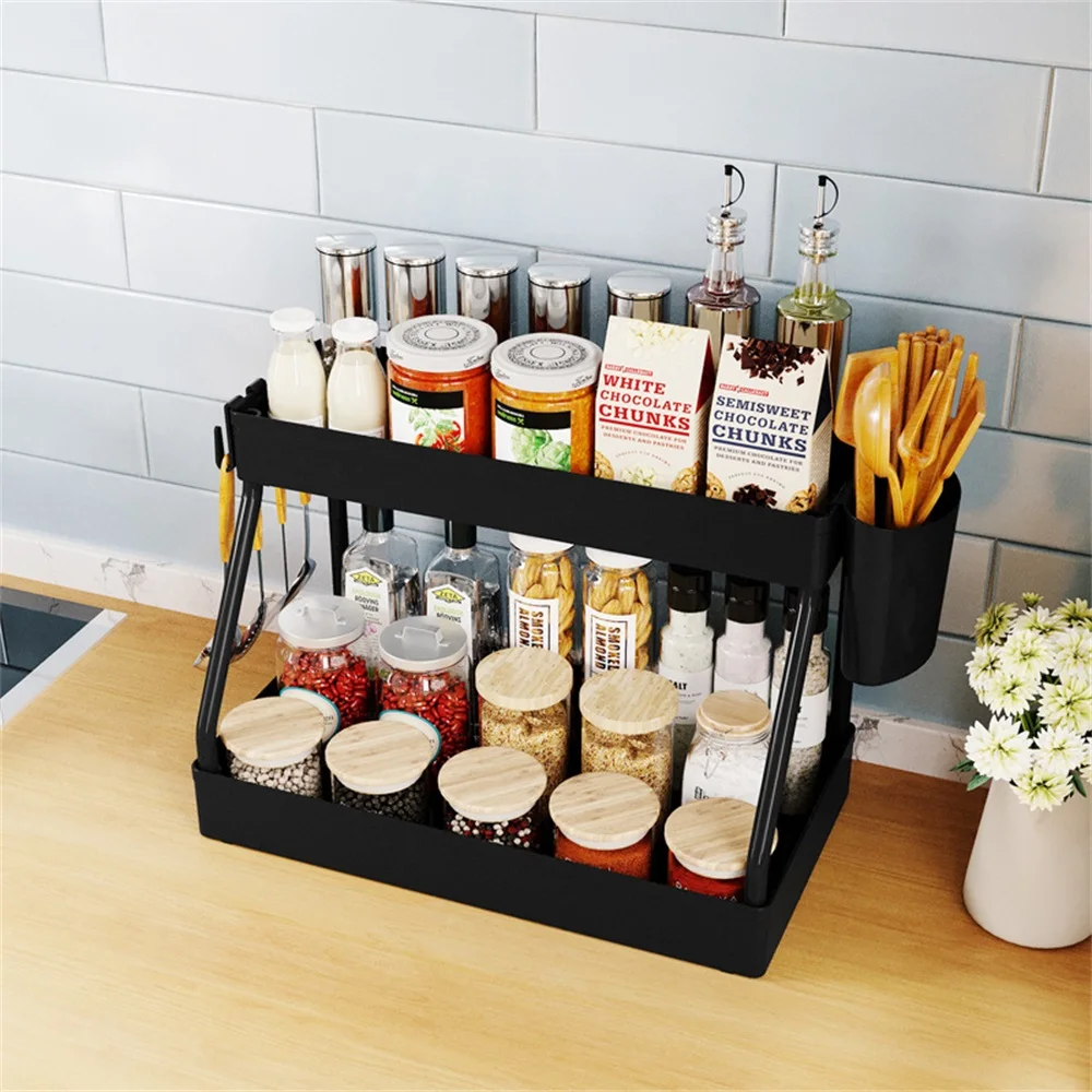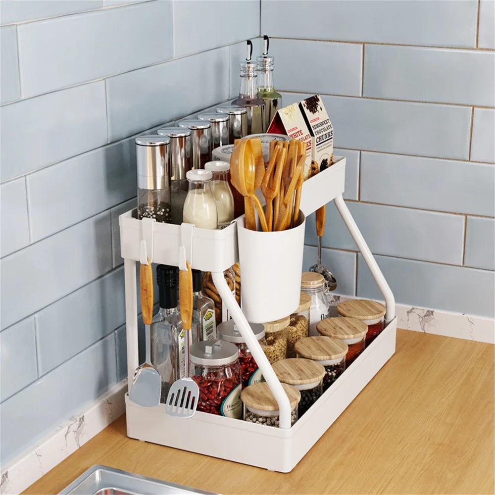 MlbeYilCHere you can buy 2 Tier Kitchen Organizer Under Sink Storage With Hooks Kitchen Storage Rack Seasoning Holder Spice Bottle Rack Kitchen Organizer with free delivery to your post office.