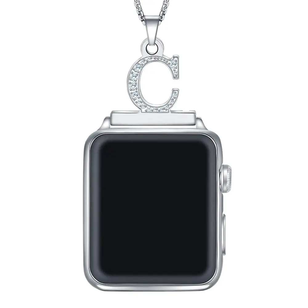 "2 in 1 Zircon Alphabet C Necklace Pendant Watch Connector Adapter Chain for Watch Series 6/SE/5/4/3/2/1 42/44mm Free Nickel" * Buy Now Just For 19$
