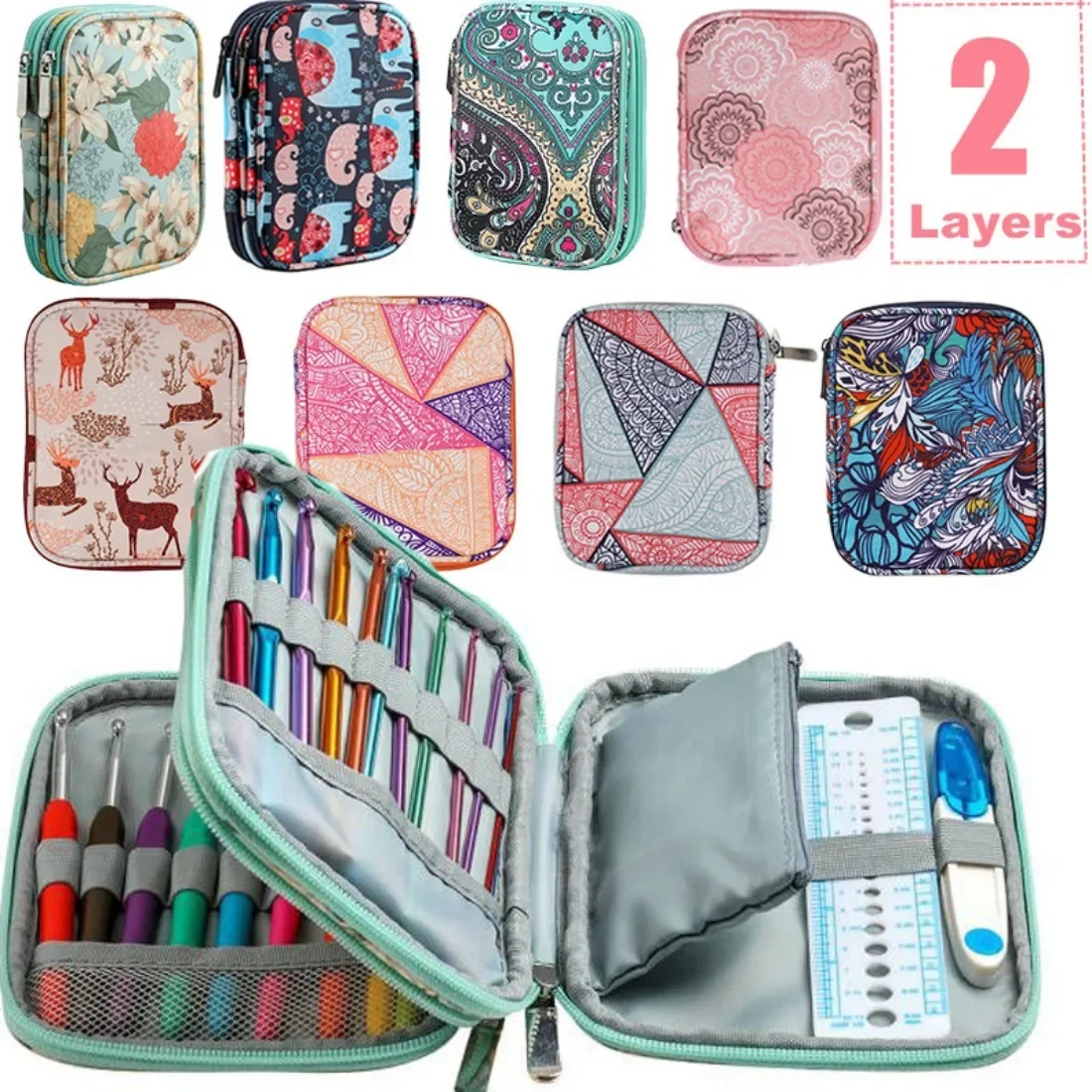 2 layers Empty Crochet Hooks Pouch Storage Bag Knitting Kit Case Organizer Bag For Crochet Needles Scissors Ruler Sewing Kit Bag - Купить с бесплатной доставкой
