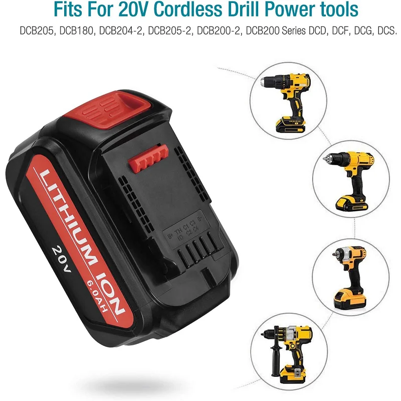 «20 Volt 6.0Ah DCB203 Battery Replacement for Dewalt 20V Batteries DCB200 DCB201 DCB204 DCB206 DCB207 DCB180 DCD/DCF/DCG Series» по лучшей цене на рынке! Всего за 33$ (3135рублей)
