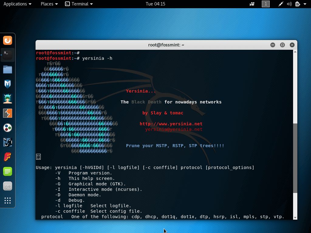 Yersinia получила название в честь бактерий иерсиний и стала сетевой утилитой, которая разработана для использования уязвимых сетевых протоколов под видом безопасной сетевой системы анализа и тестирования.