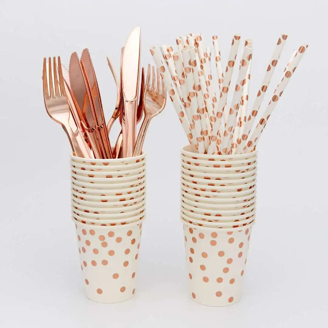 UShmylTrltДолго искали 200 PCS Serves 25 Rose Gold Dot Tableware Set,Disposable Party Dinnerware Kit Paper Straws Napkins Plates Cups Cutlery Wedding, но не могли найти? Предоставляем вашему вниманию 200 PCS Serves 25 Rose Gold Dot Tableware Set,Disposable Party Dinnerware Kit Paper Straws Napkins Plates Cups Cutlery Wedding по лучшей цене на рынке!