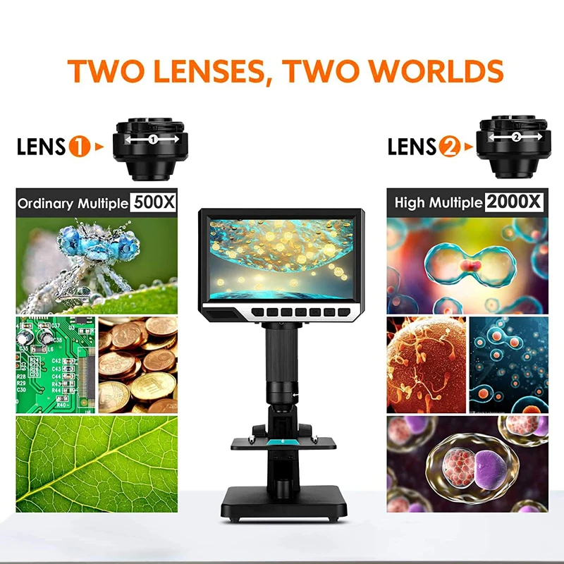 kiRyMnHwptЗдесь вы сможете купить 2000X Digital Microscope 7 Inch HD Display Dual Lens Electronic Industrial USB Microscops Camera Zoom Magnifier Endoscope с бесплатной доставкой до вашего почтового отделения.