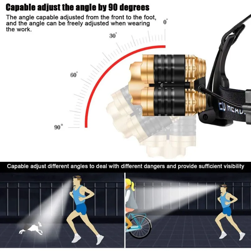 2000lu 3/5 LED Headlamp USB Rechargeable Zoomable Waterproof Flashlight 18650 Battery Torch 4 Modes Headlight Camping Lantern - Купить с бесплатной доставкой