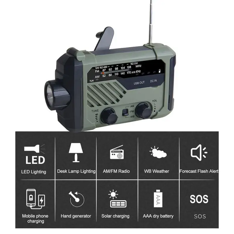 2000mAh NOAA Emergency Weather Radio LED Flashlight & Reading Lamping NOAA Emergency Weather Radio Flashlight Solar Charging - Купить с бесплатной доставкой
