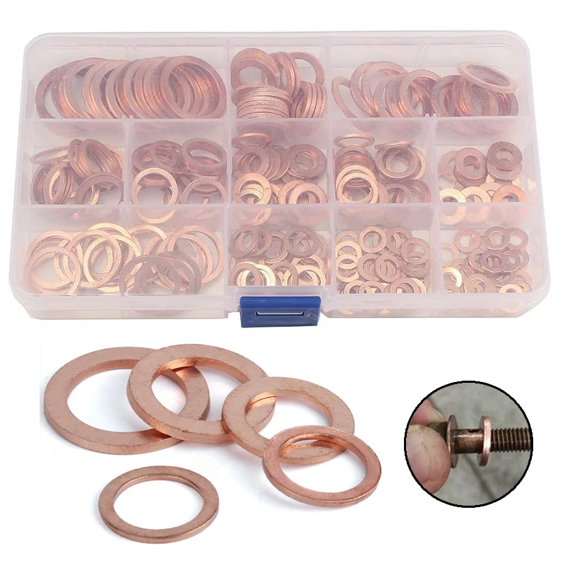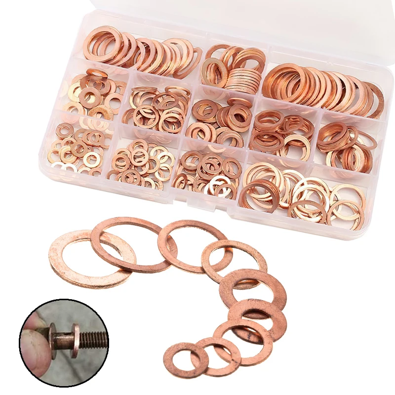 «200Pcs Copper Washer Gasket Nut and Bolt Set Flat Ring Seal Assortment Kit with Box /M8/M10/M12/M14 for Sump Plugs» по лучшей цене на рынке! Всего за 7$ (665рублей)
