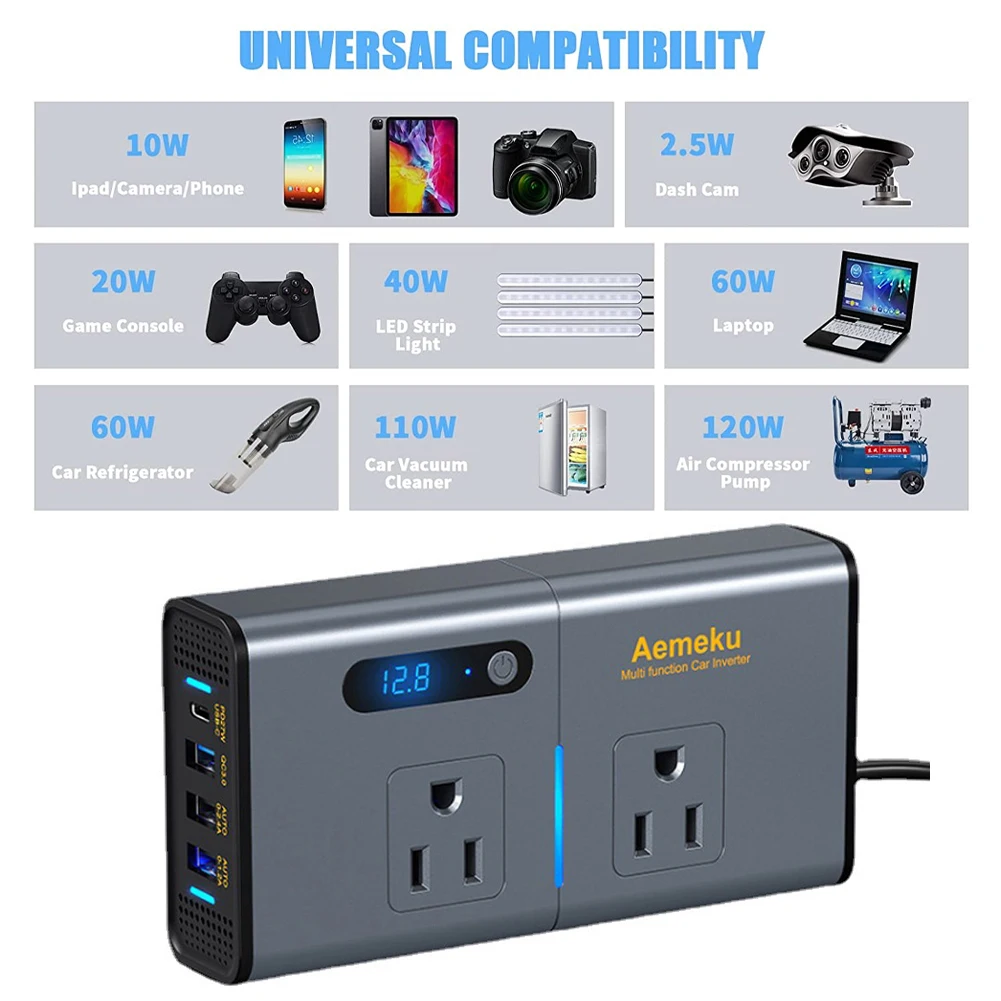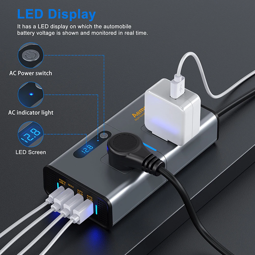 MFDITgfZxxHere you can buy 200W Power Inverter Sinewave 12V DC To 110/220V AC Inverter Adapter With 4 USB Ports Fast Charging LCD Display Power Transformer with free delivery to your post office.