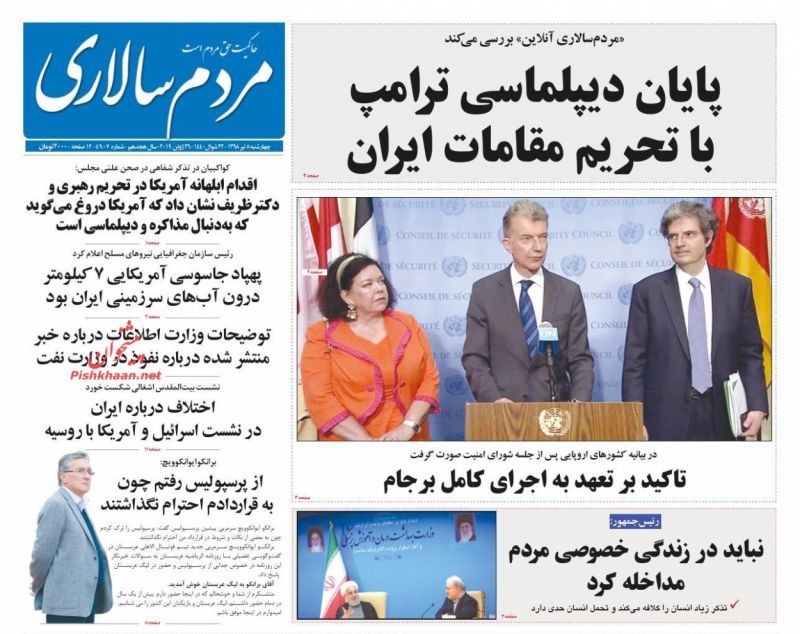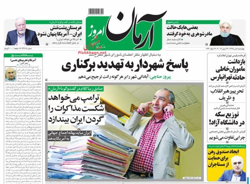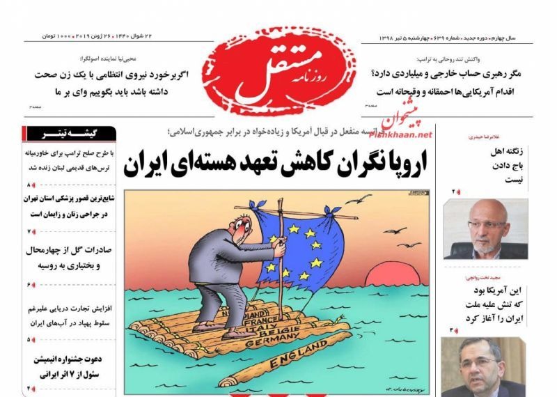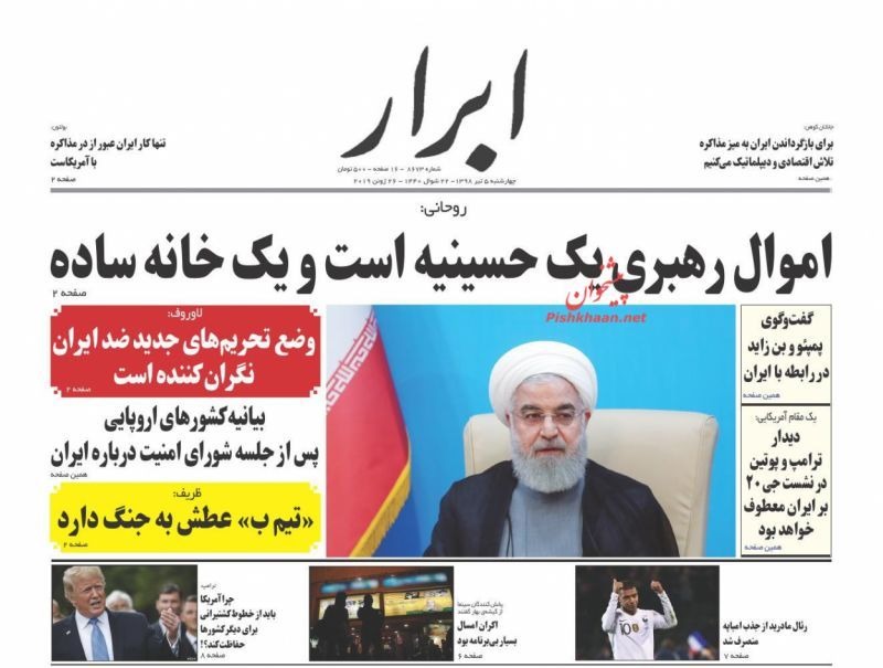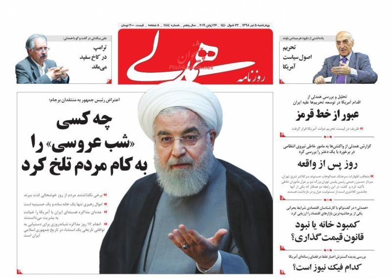 مروری بر صفحه نخست روزنامههای امروز چهارشنبه ۱۳۹۸٫۴٫۵
