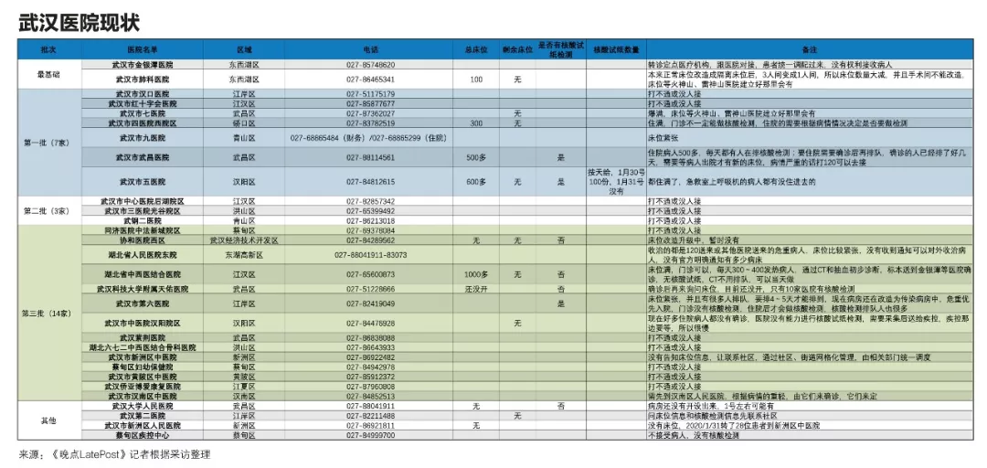 从目前的调查来看,患者主要有两条路径可以入院。一是靠社区排队:1月24日武汉社区分流政策实施后,病人需要拿着住院单入院——病患先去社区交CT、血常规报告,社区上报街道,再根据轻重缓急对接医院的新开床位;二是去有核酸试纸的定点医院,48小时拿结果,确诊后就不能被医院拒收。