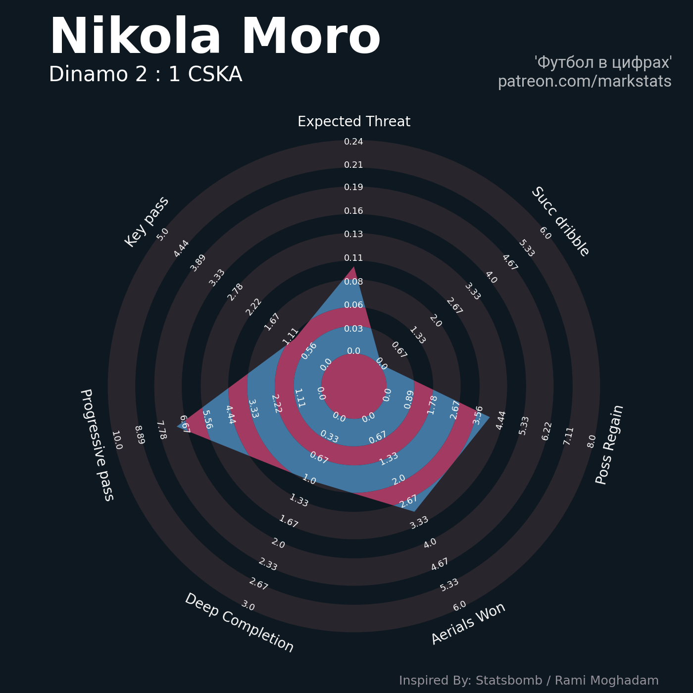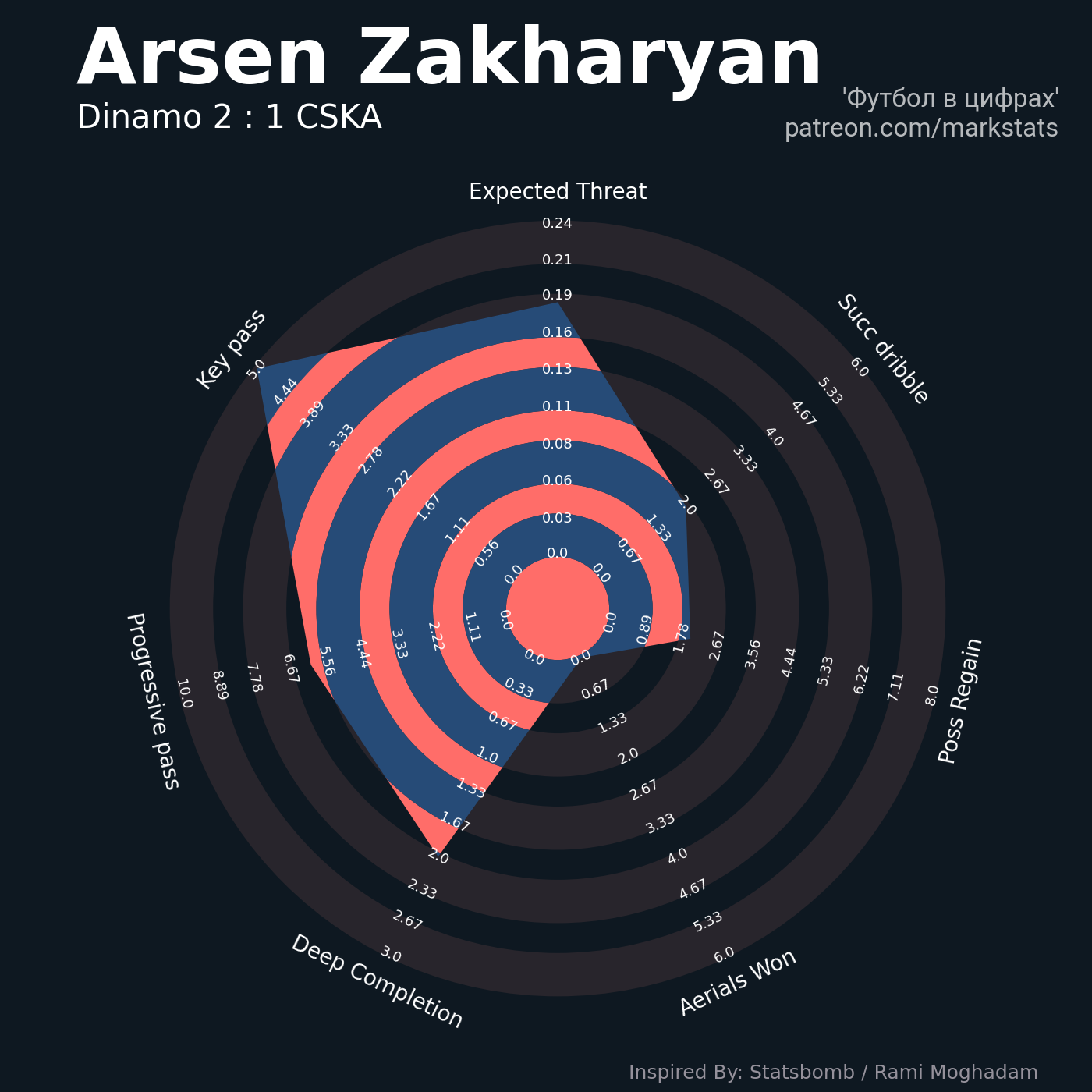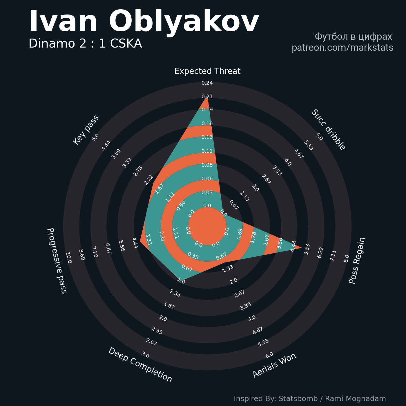 ▪ 0.24 очка xT (+0.08 со стандартов)