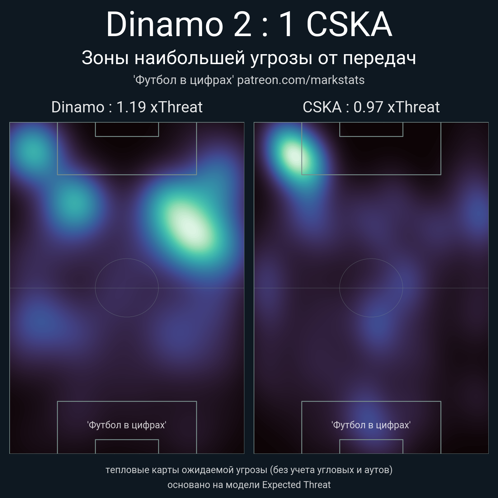 ▪ xThreat без учета угловых: 1.19 - 0.97