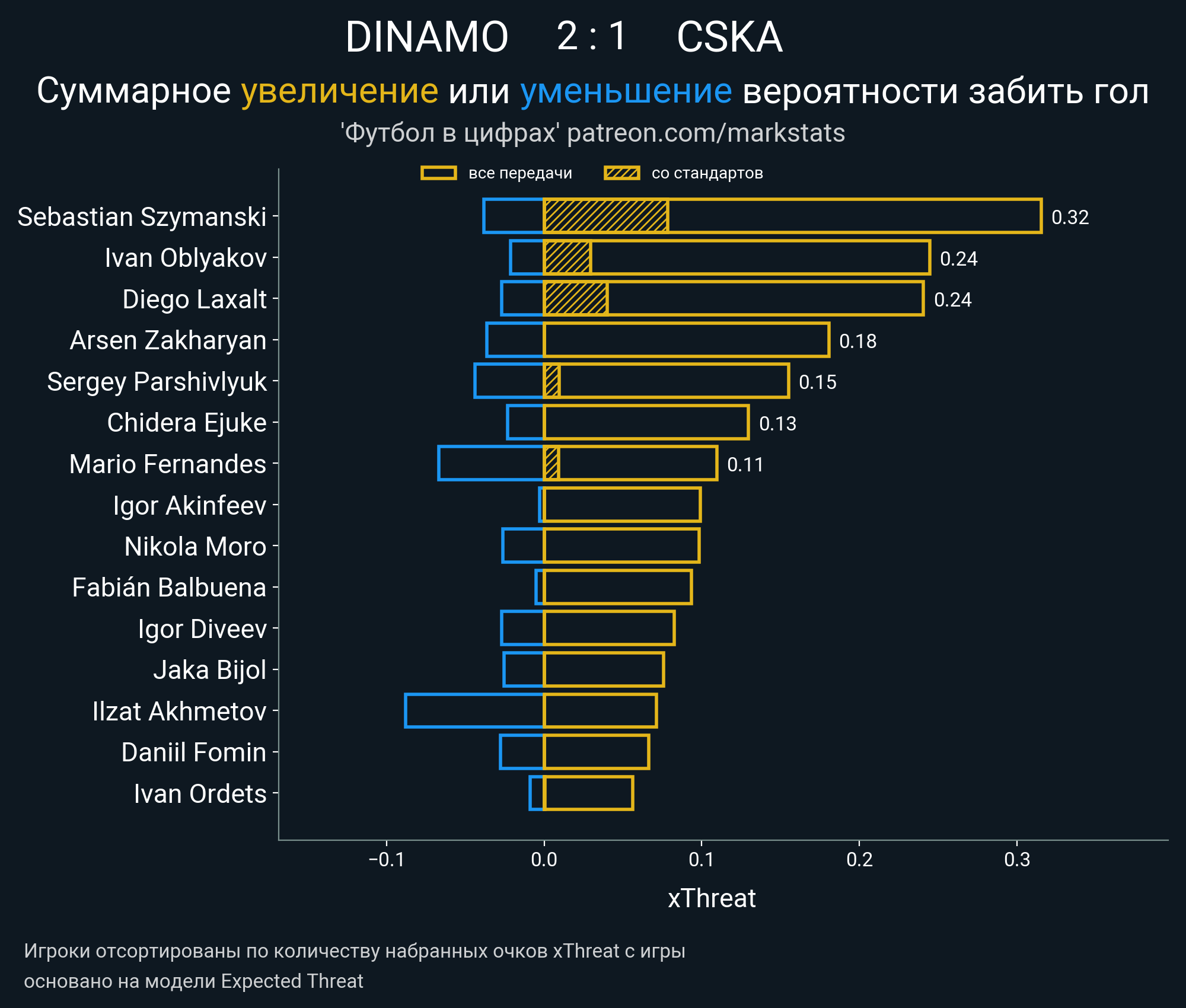 ▪ 0.22 очка xT (+0.03 со стандартов)