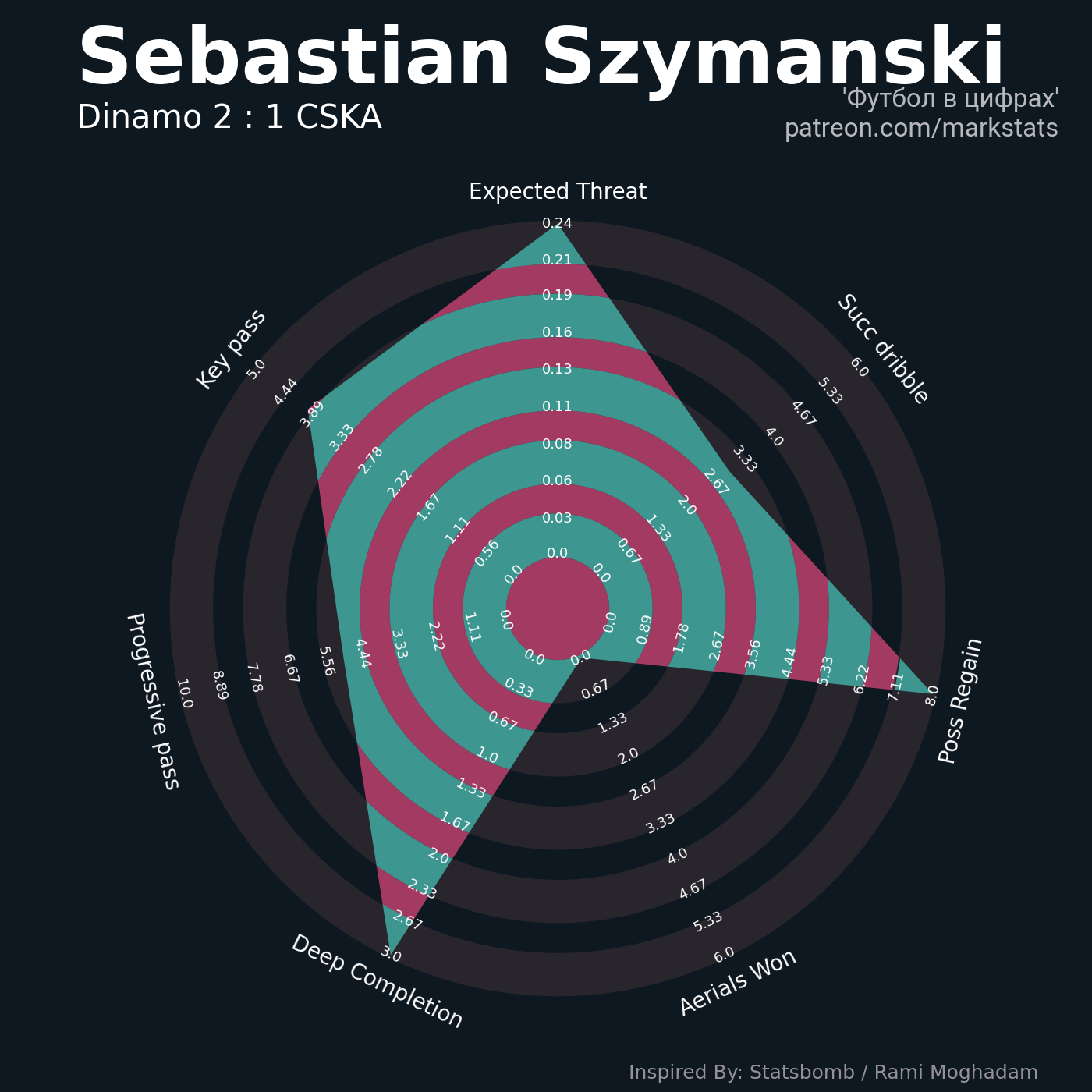 ▪ Sebastian Szymanski - Dinamo Moscow : 8