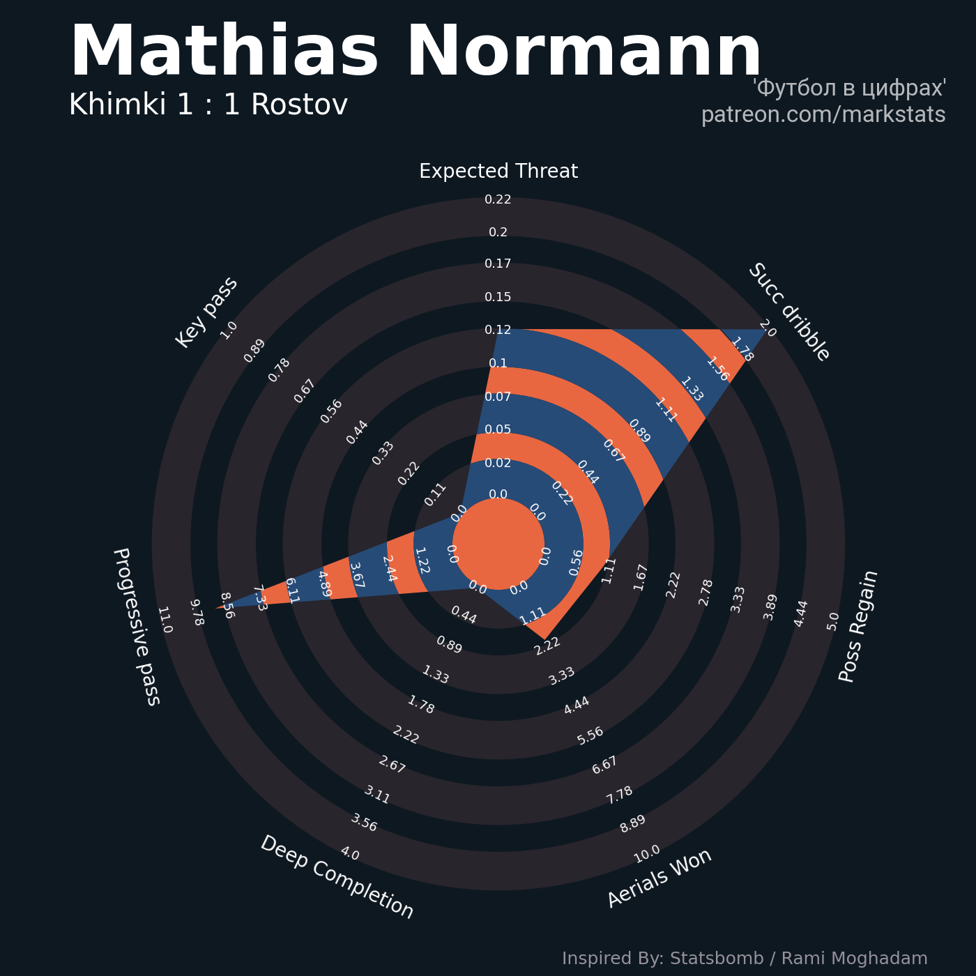 ▪ 0.22 очка xT (+0.13 со стандартов)