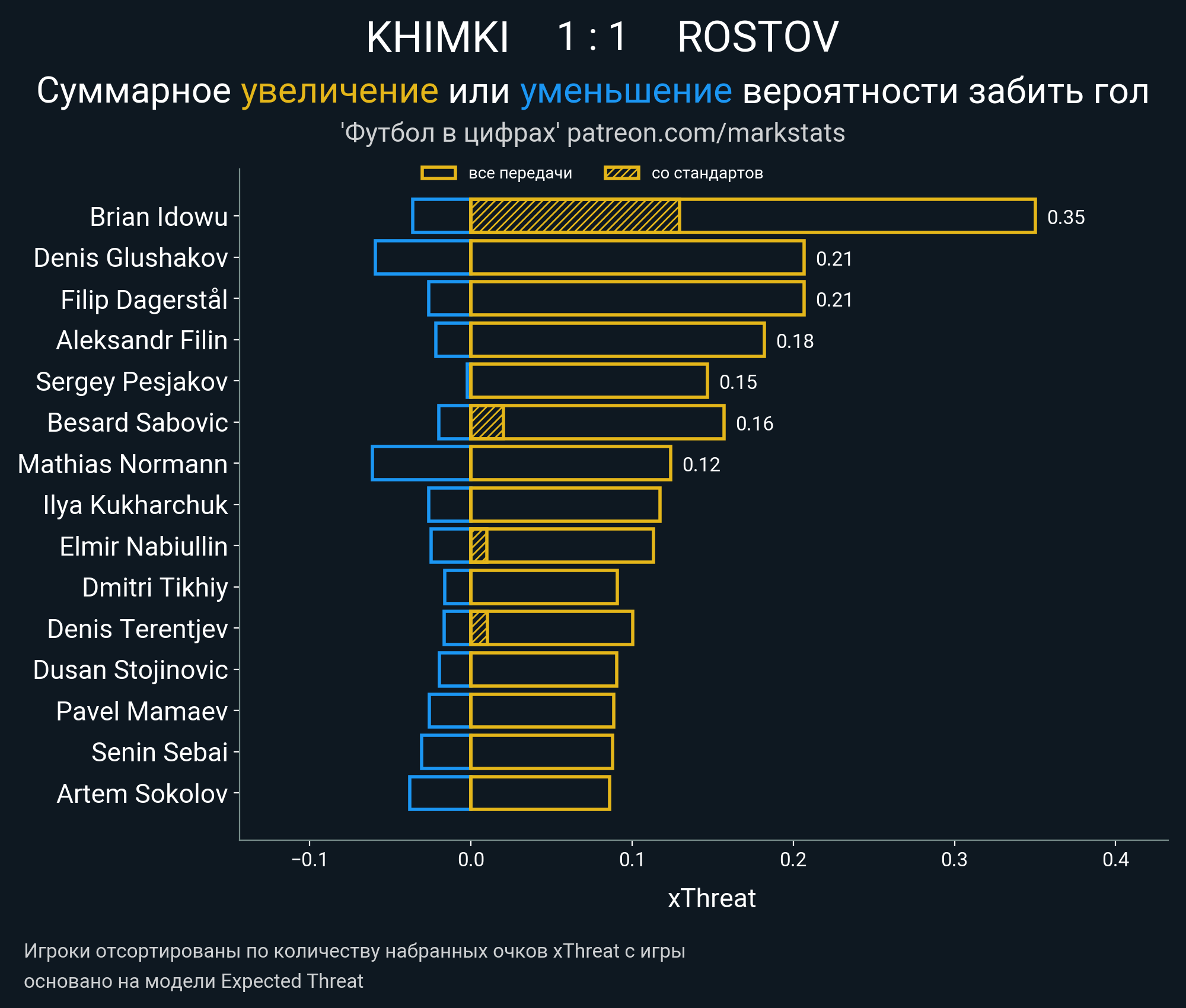 Очки xThreat с игры: