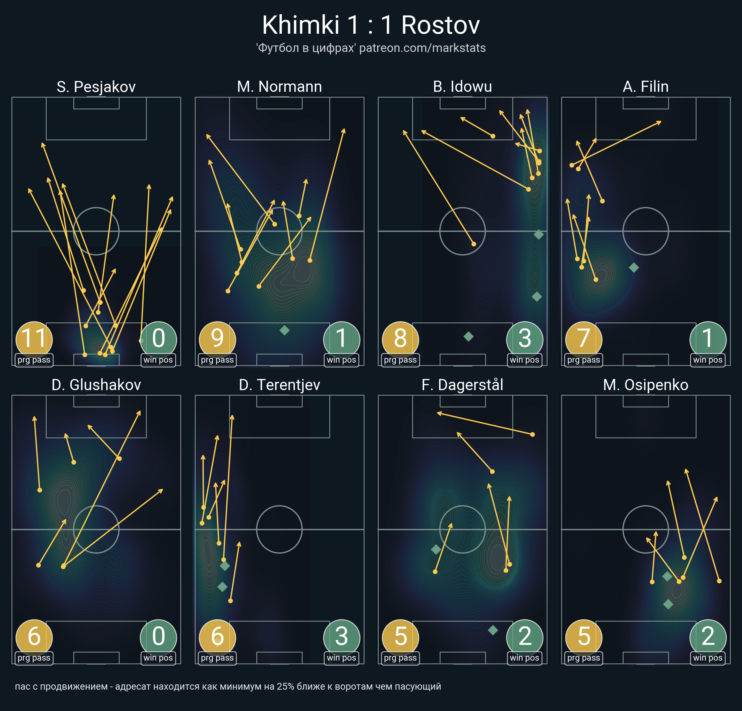 ▪ 20 успешных передач из 33 попыток (1 под удар, 1 с продвижением, 2 на трети соперника)