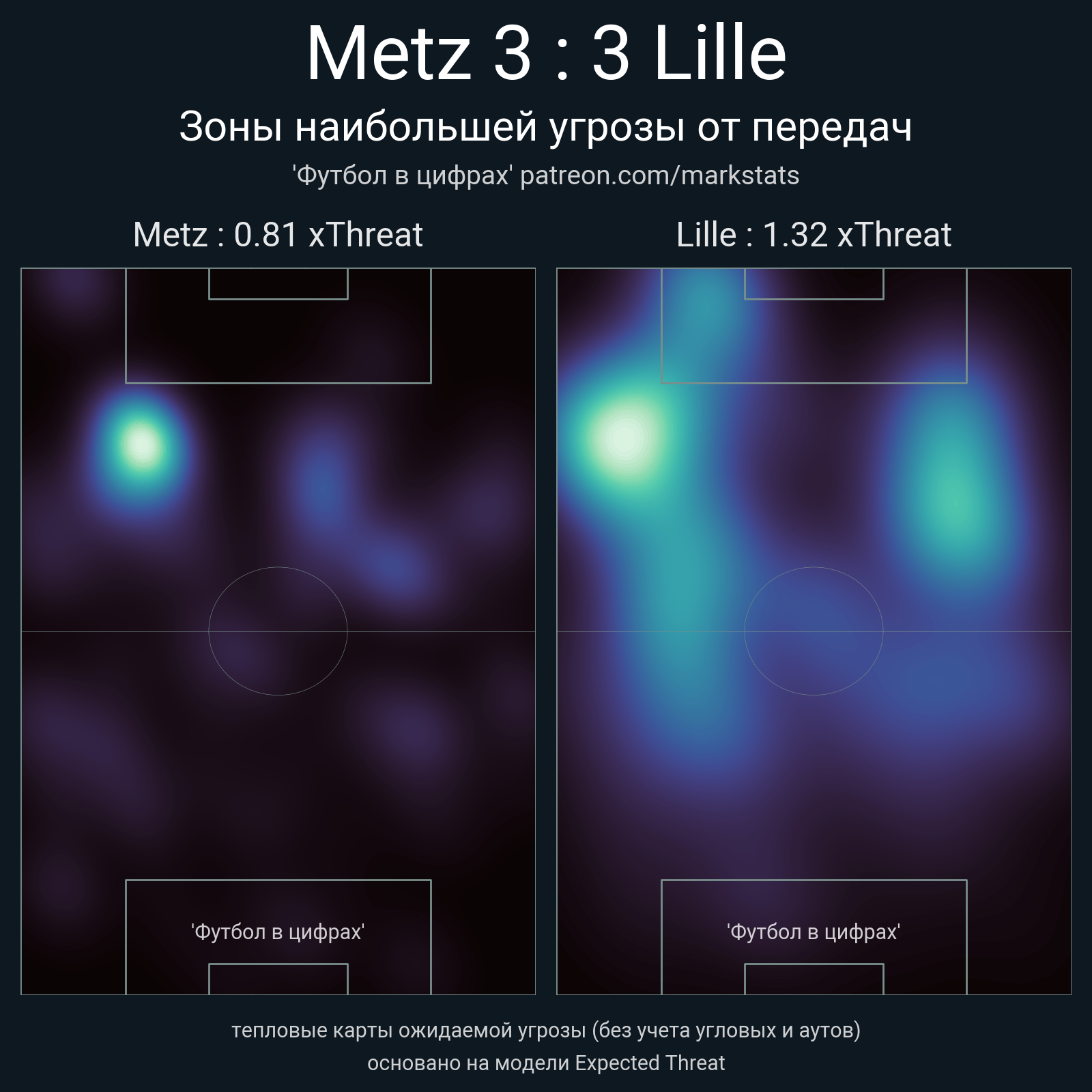 ▪ xThreat без учета угловых: 0.81 - 1.32
