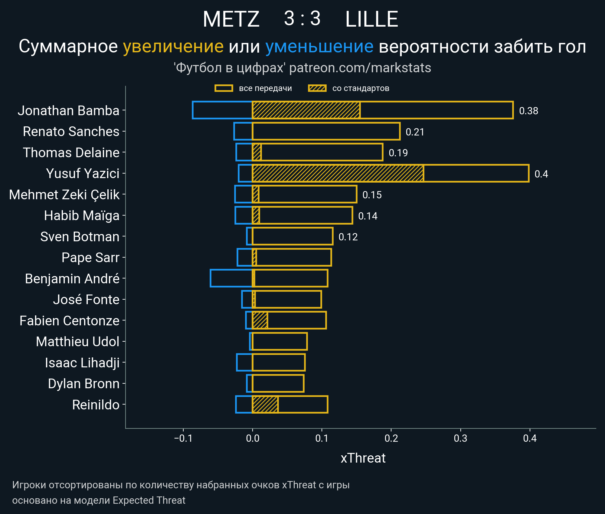Очки xThreat с игры: