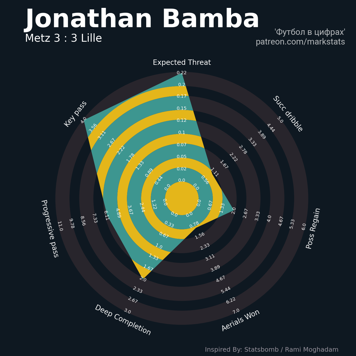 ▪ 0.22 очка xT (+0.15 со стандартов)