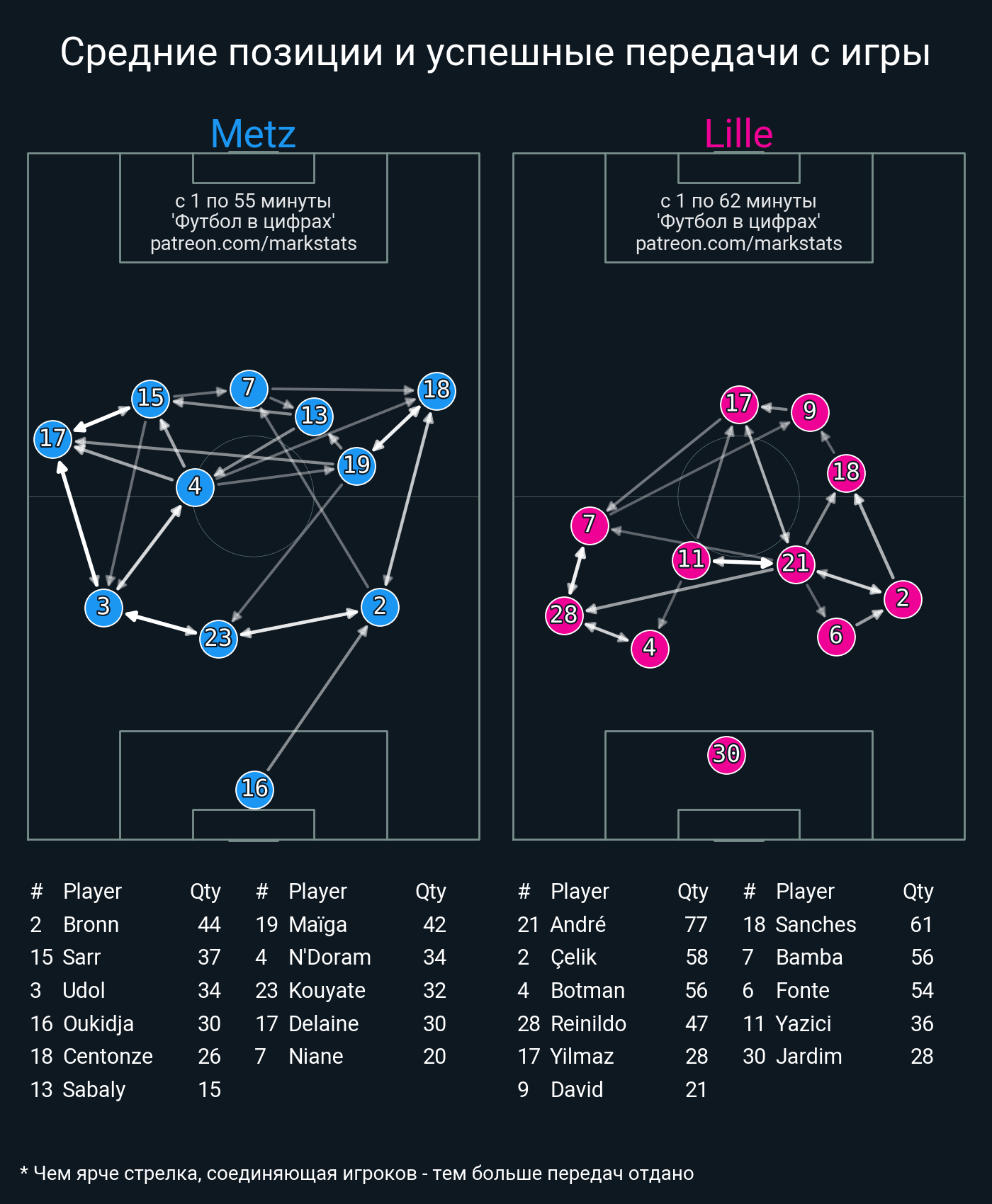 ▪ 49 успешных передач из 62 попыток (4 под удар, 6 с продвижением, 20 на трети соперника)