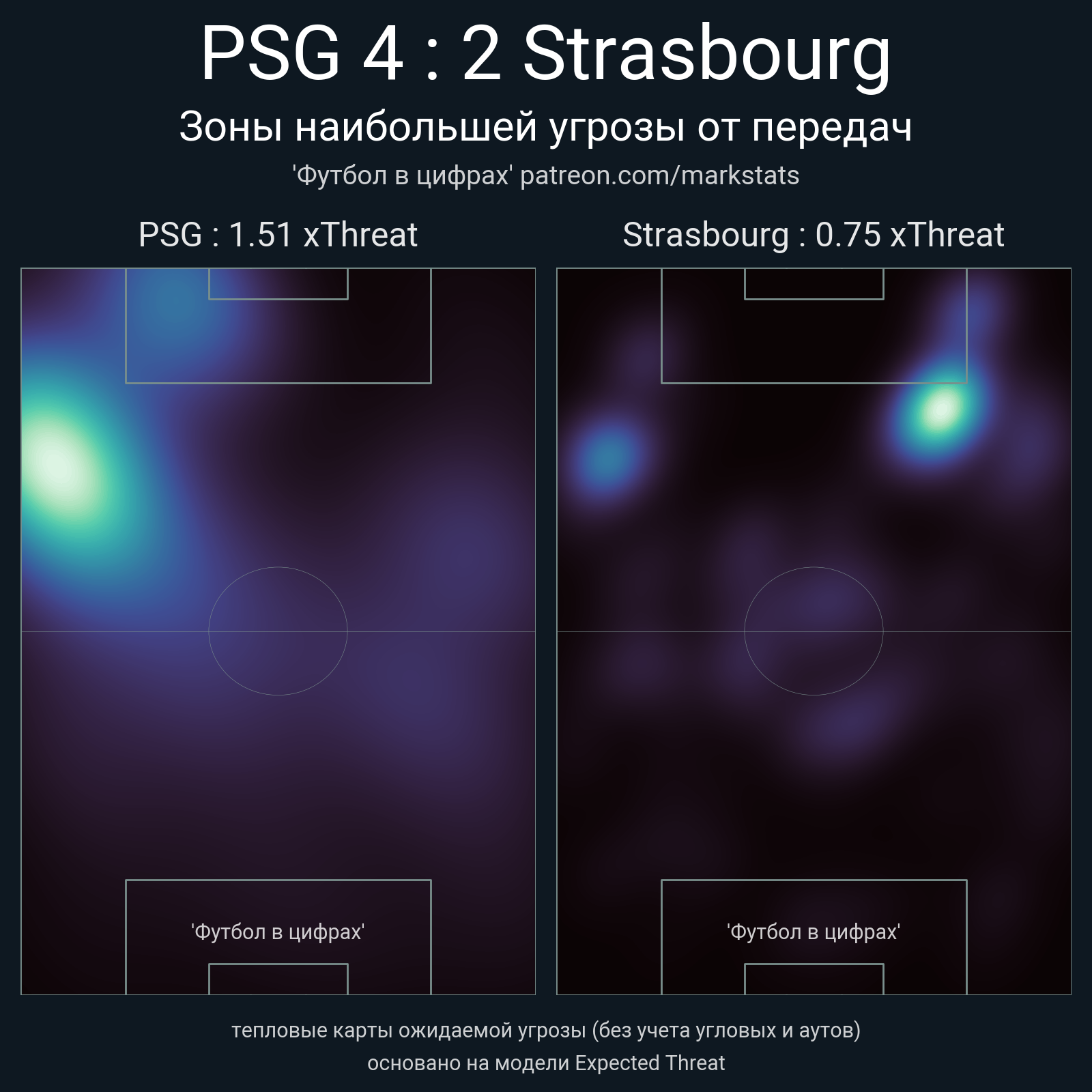 ▪ xThreat без учета угловых: 1.51 - 0.75