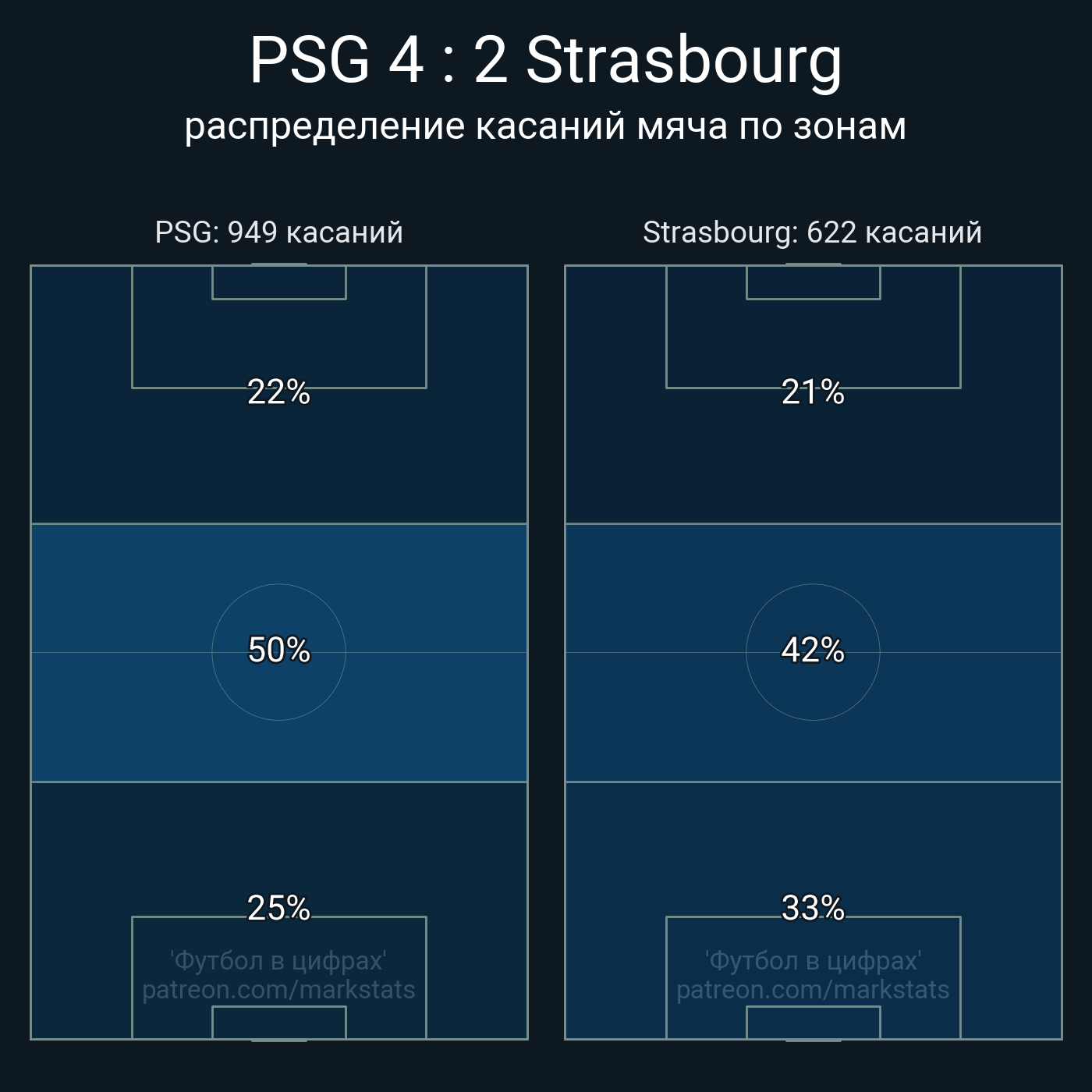 Футбол в цифрахСтатистика матча PSG - Strasbourg