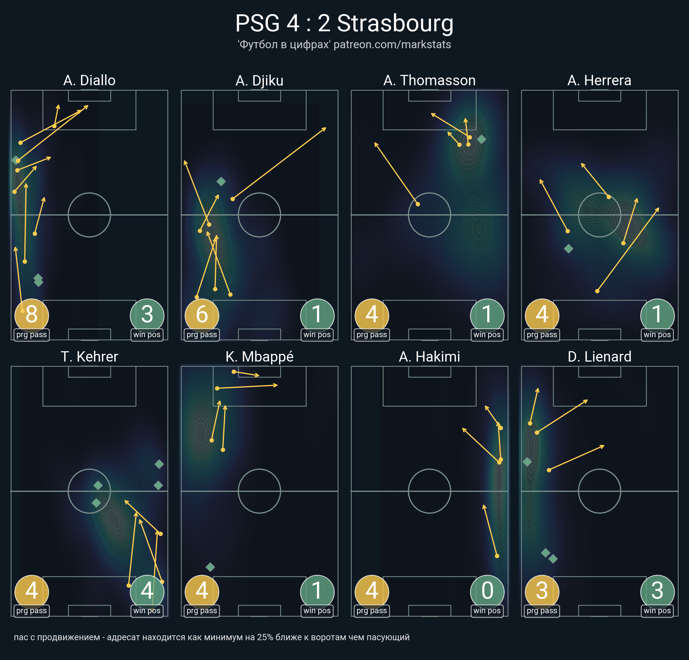 ▪ 25 успешных передач из 31 попыток (1 ассист, 1 под удар, 4 с продвижением, 8 на трети соперника)