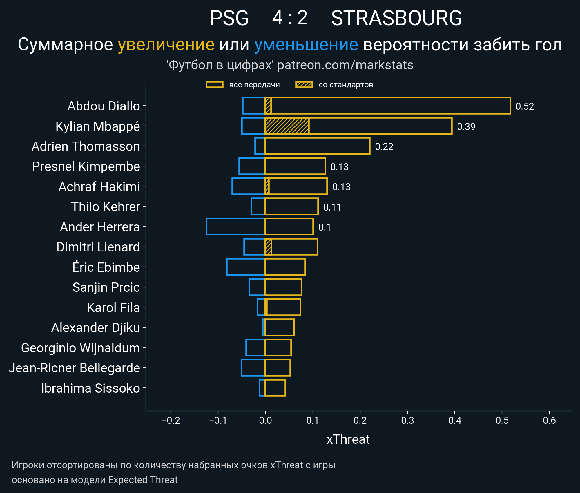 Очки xThreat с игры: