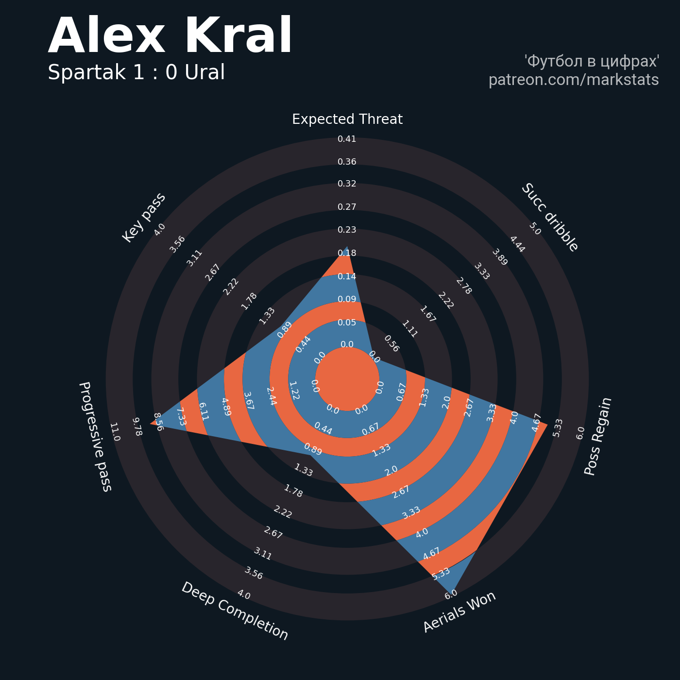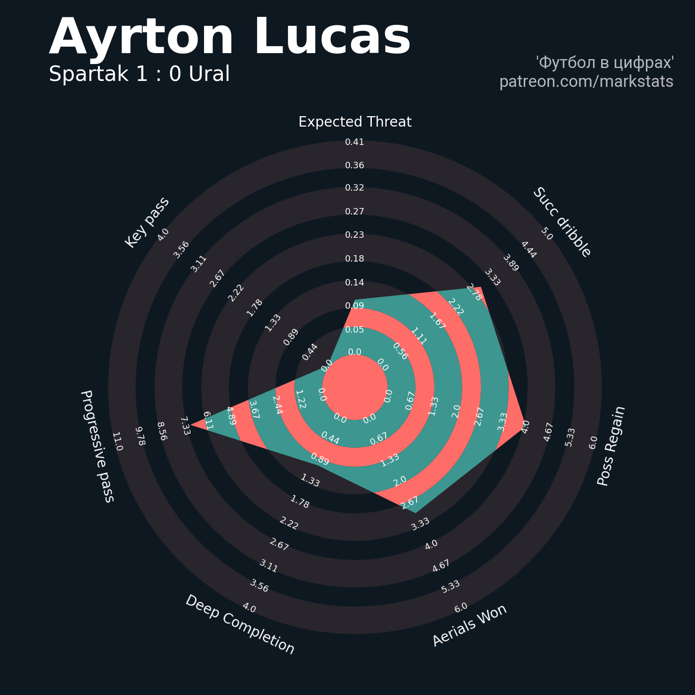 ▪ 0.41 очка xT (+0.05 со стандартов)