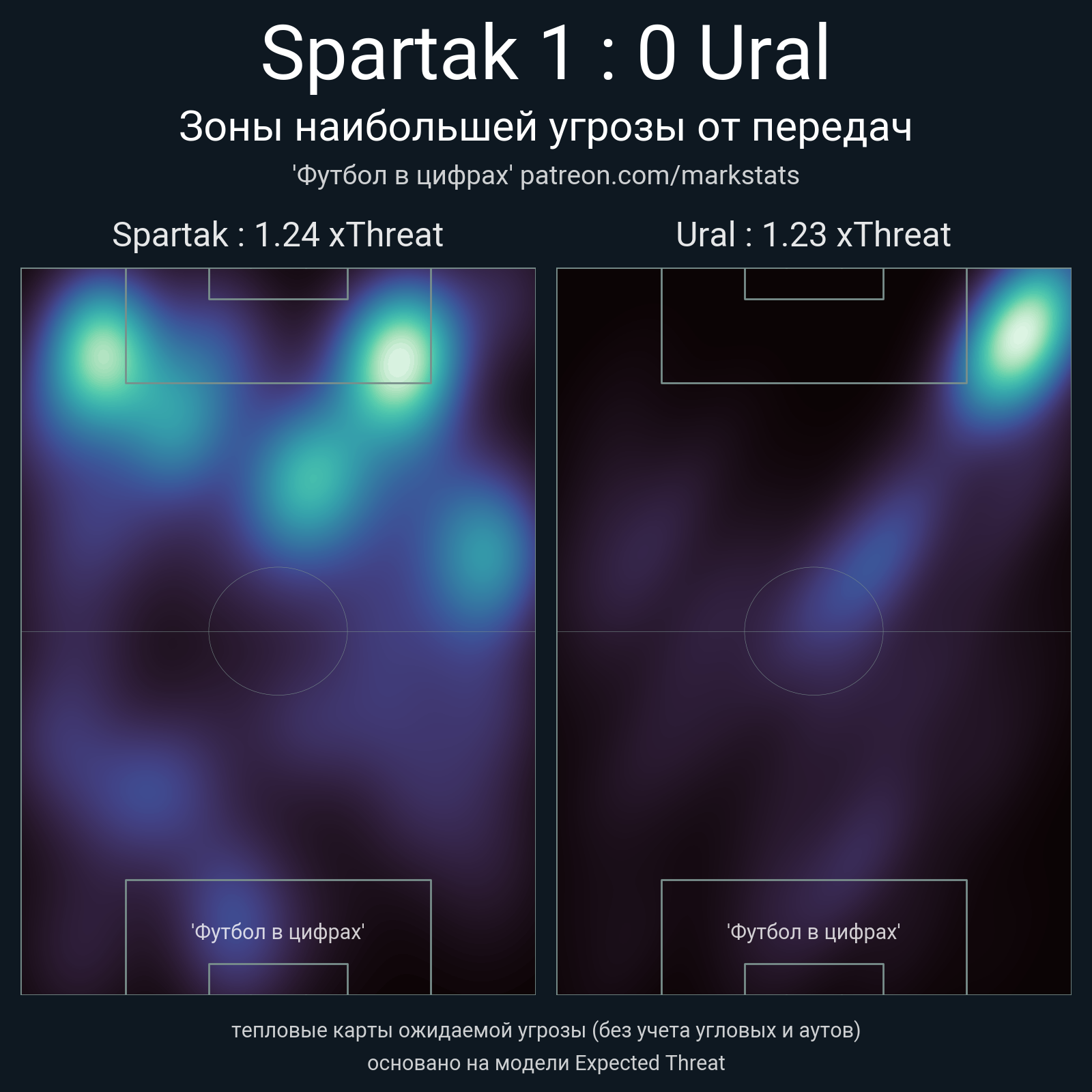 ▪ xThreat без учета угловых: 1.24 - 1.23