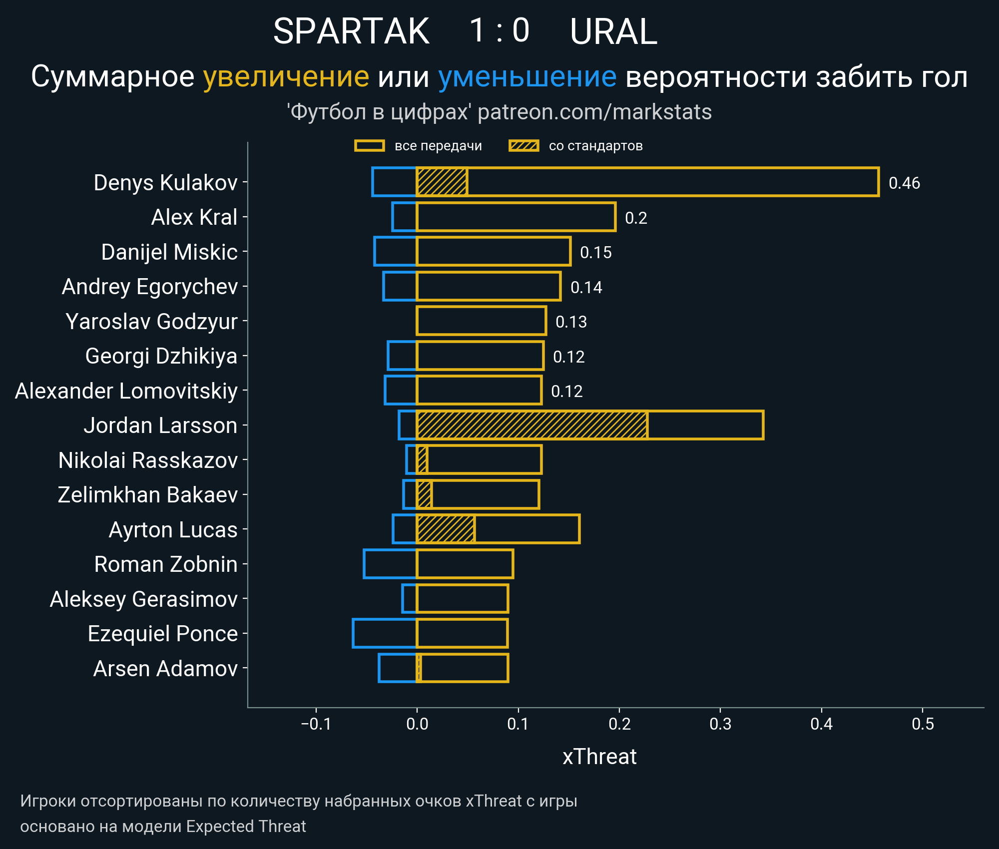 Очки xThreat с игры: