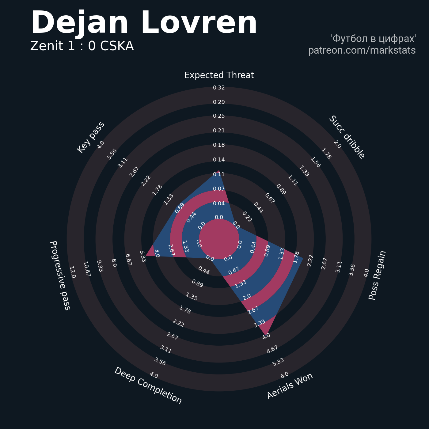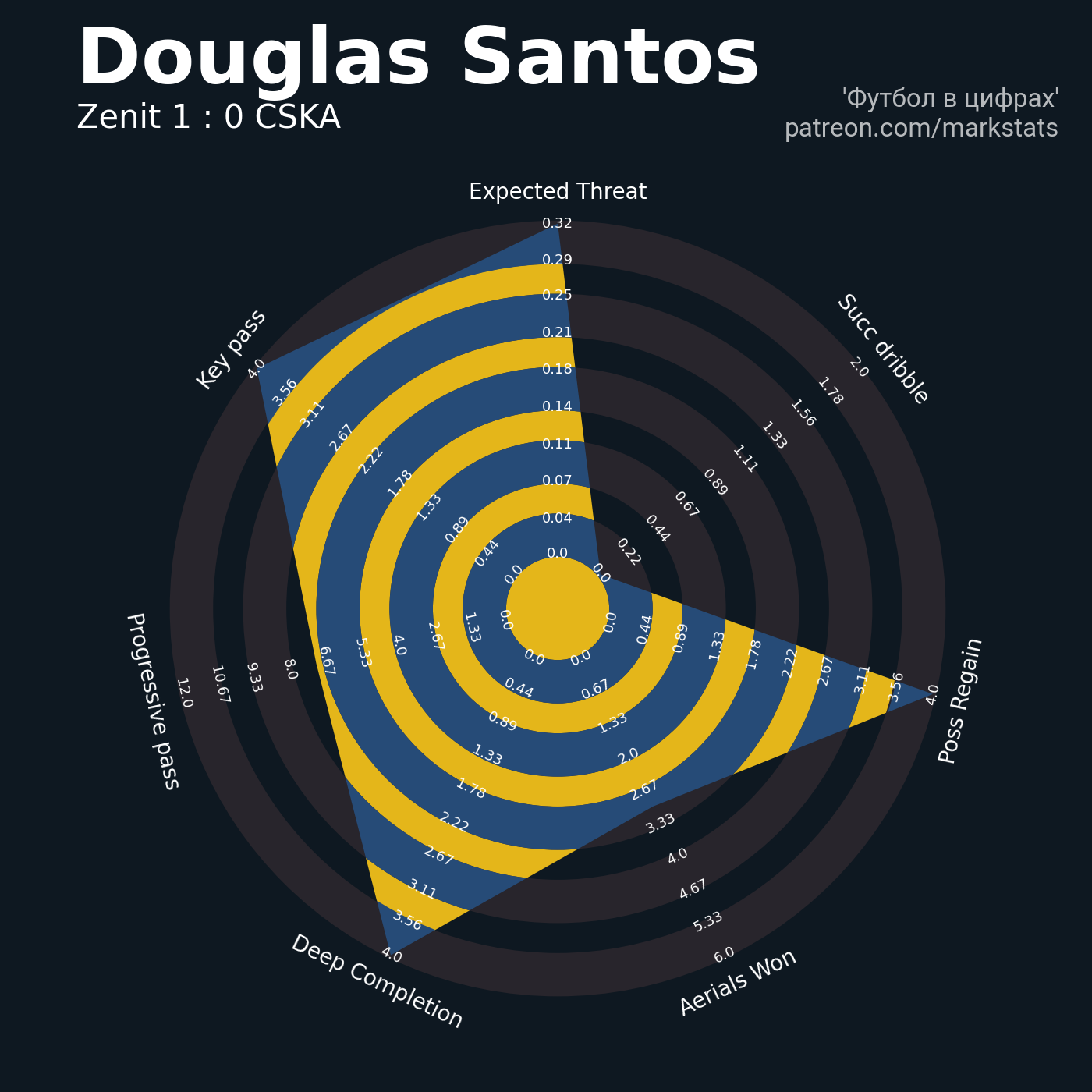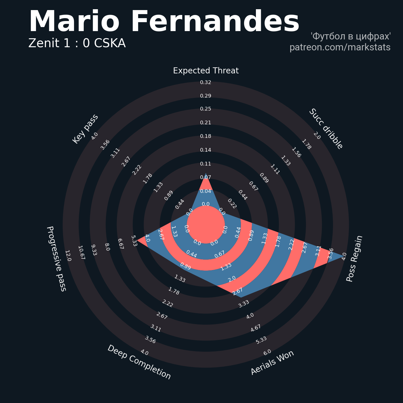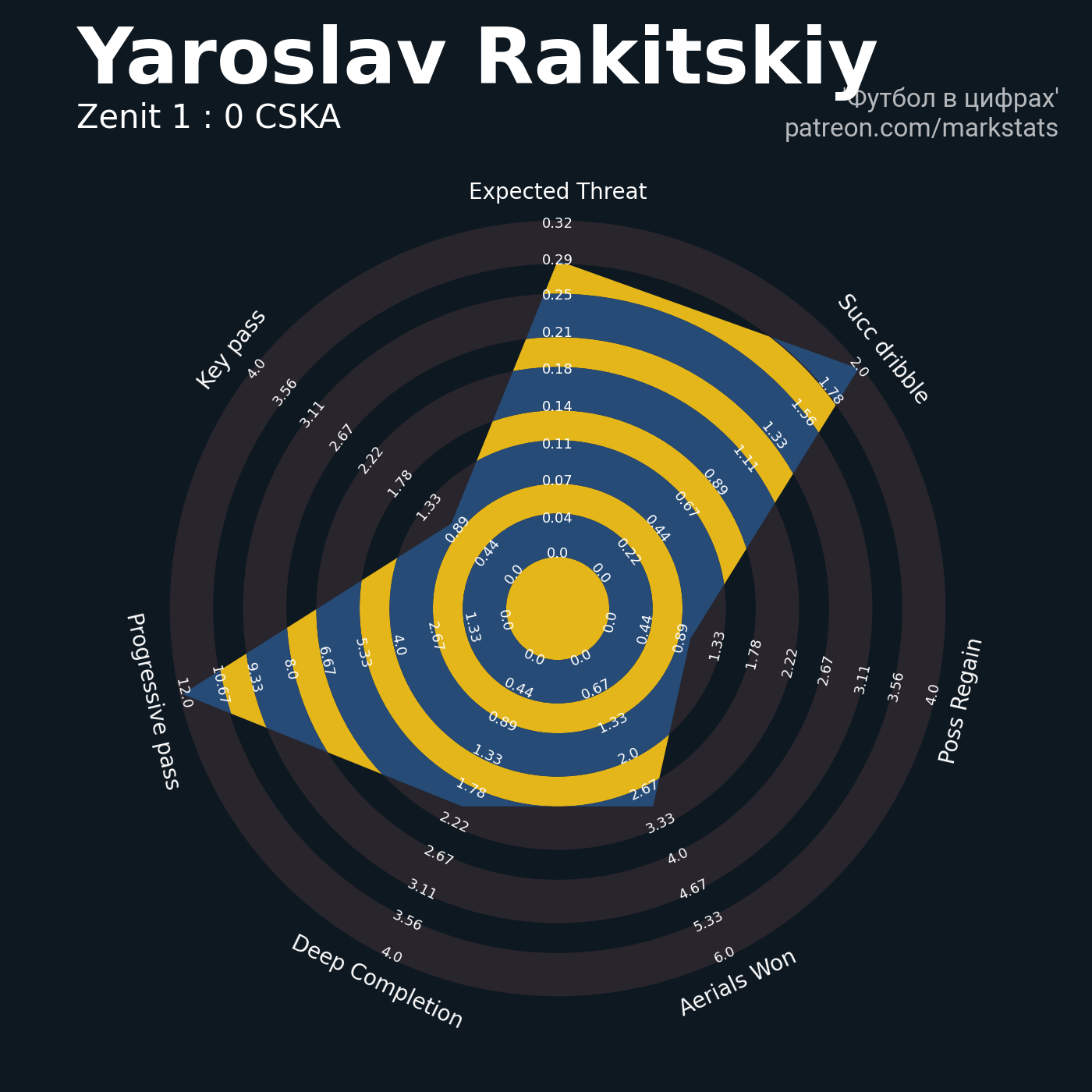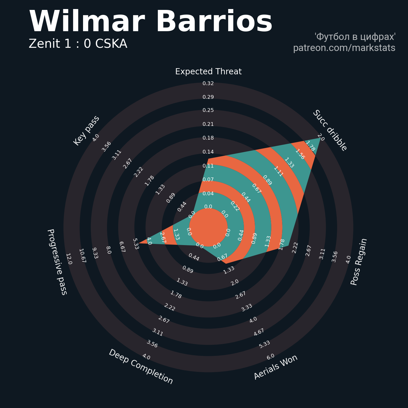 ▪ 0.32 очка xT (+0.37 со стандартов)