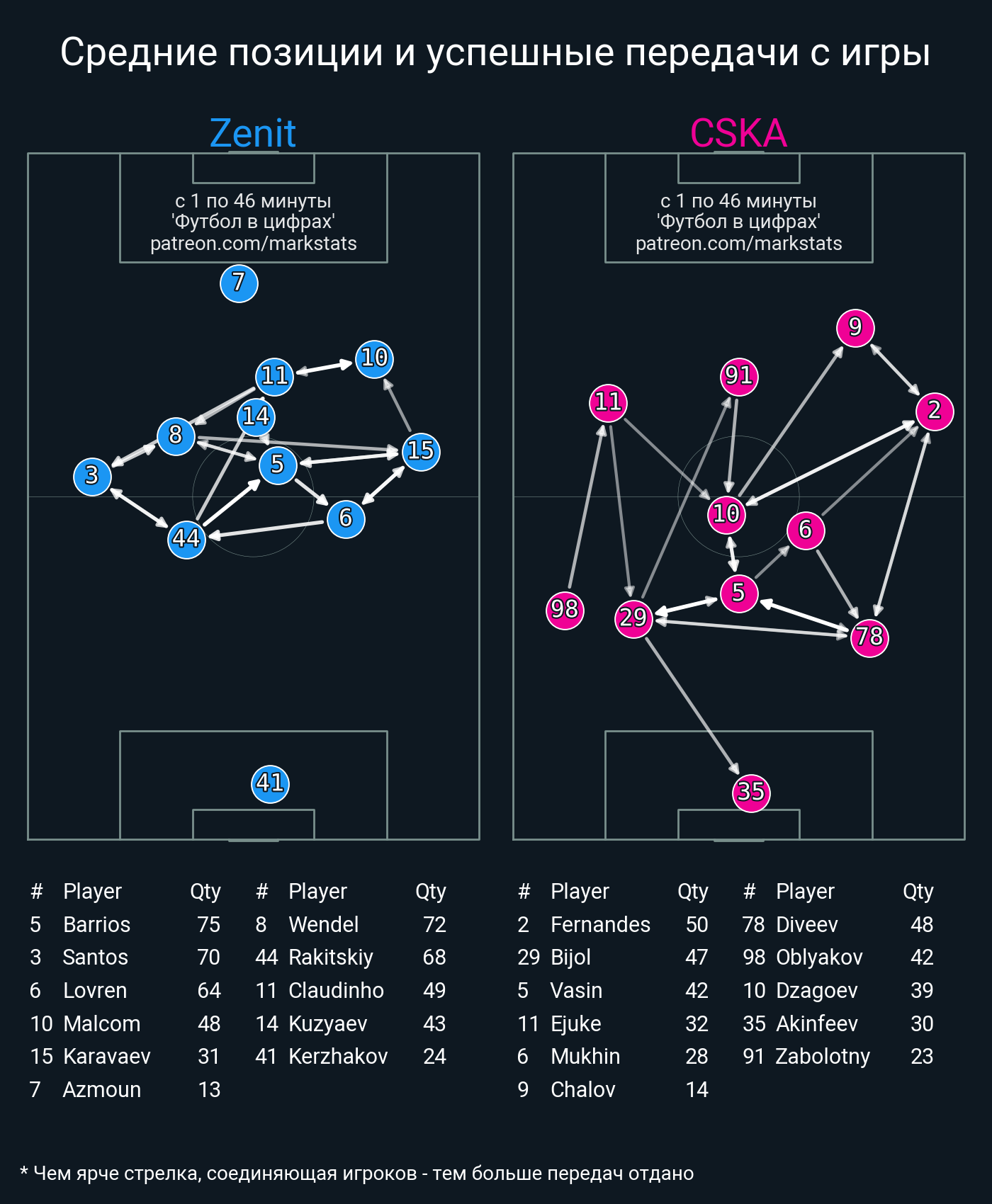 Футбол в цифрахСтатистика матча Zenit - CSKA Moscow