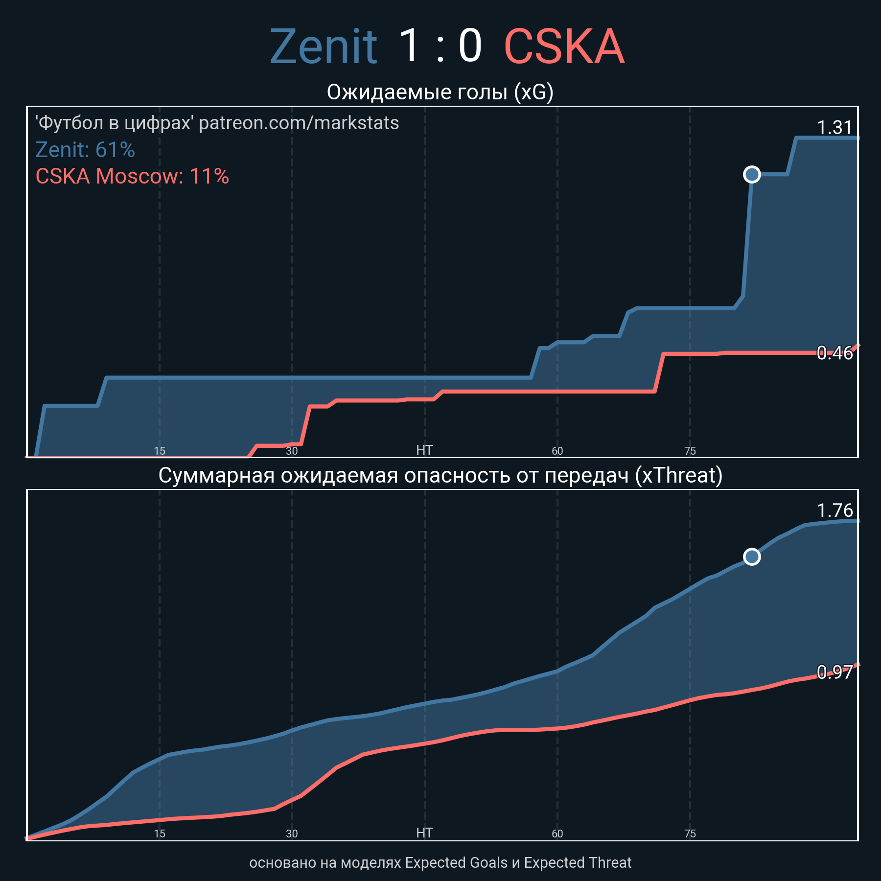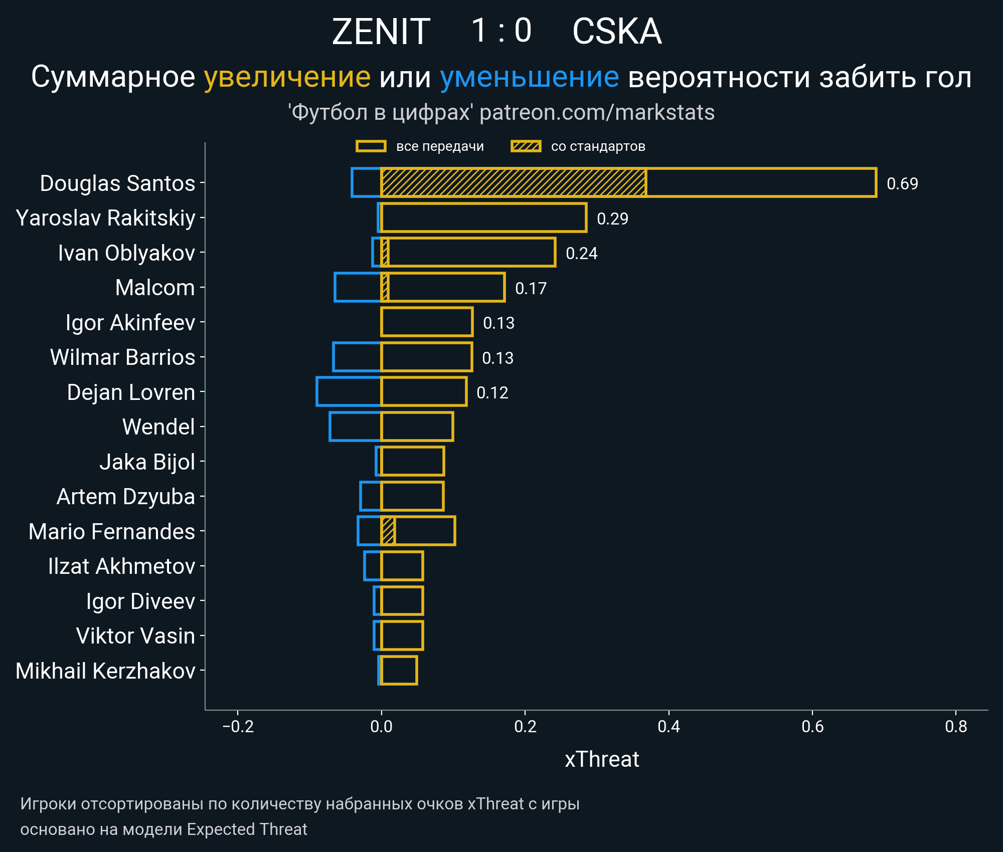 Очки xThreat с игры: