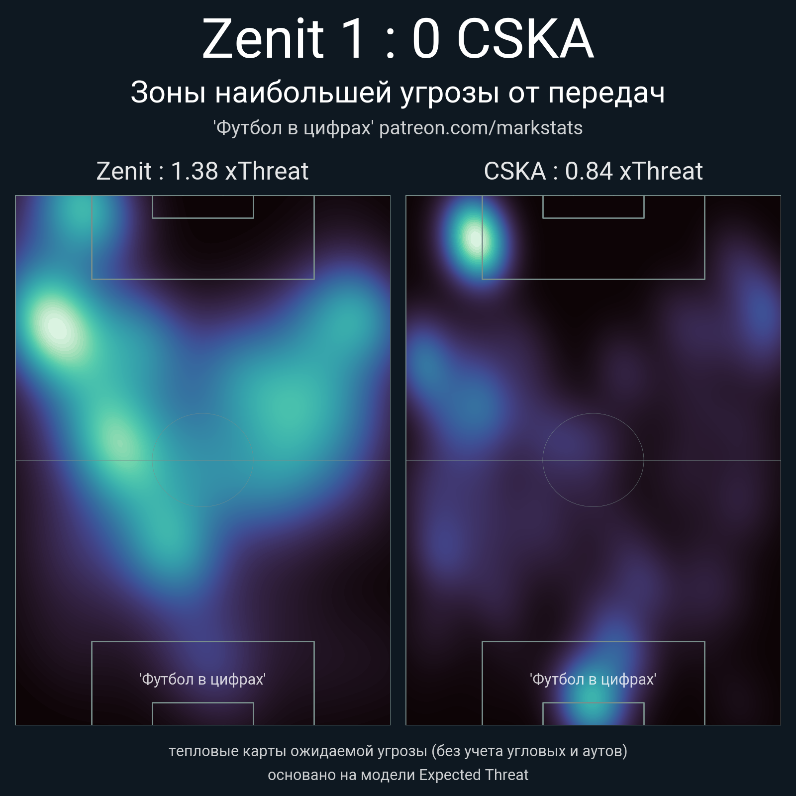 ▪ xThreat без учета угловых: 1.38 - 0.84