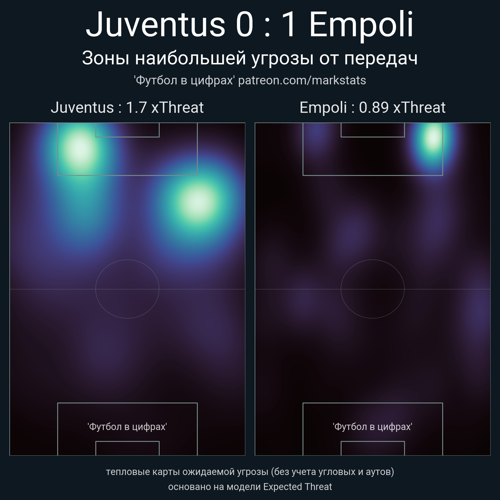 ▪ xThreat без учета угловых: 1.7 - 0.89