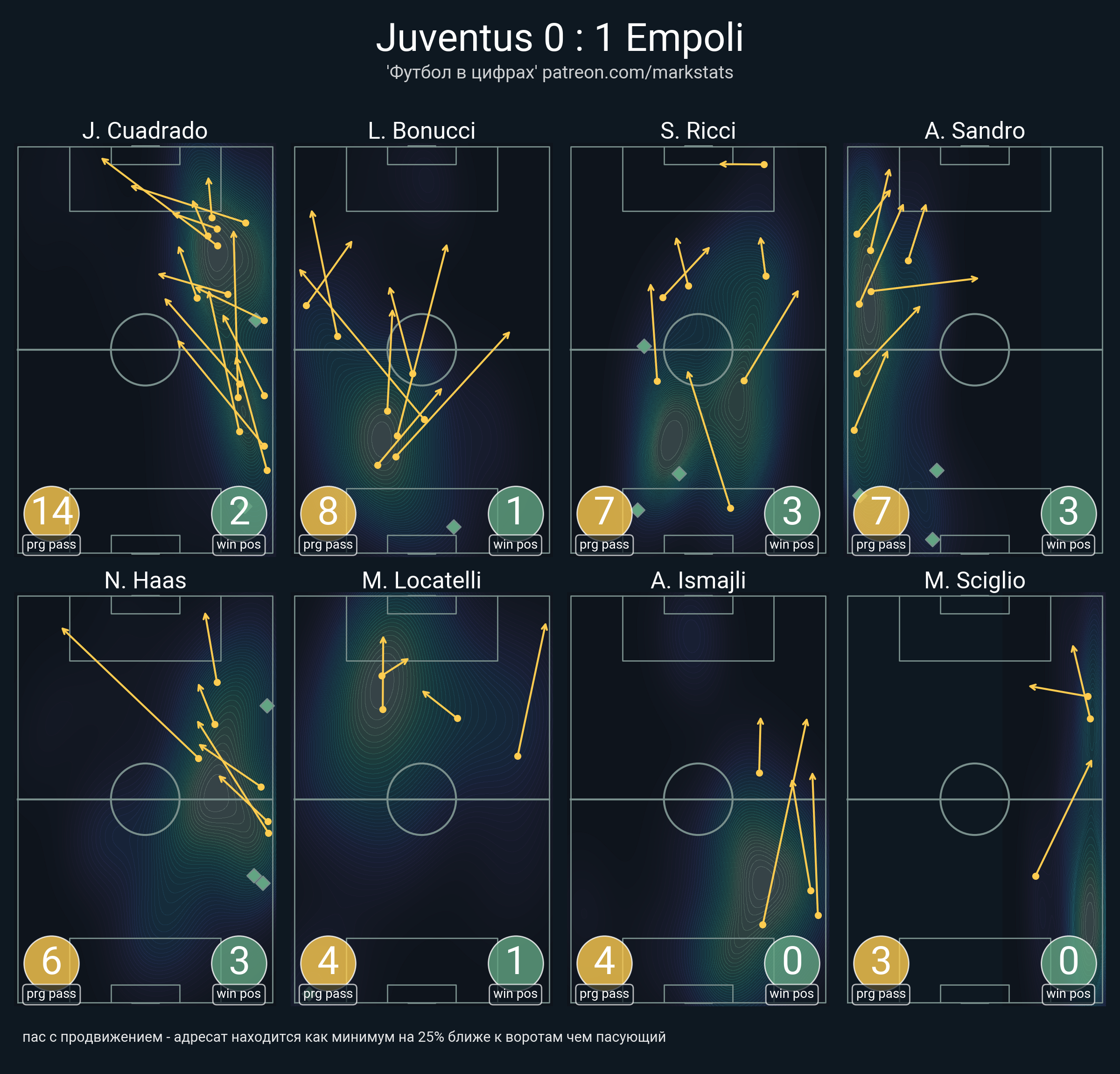 ▪ 18 успешных передач из 25 попыток (2 под удар, 3 с продвижением, 5 на трети соперника)