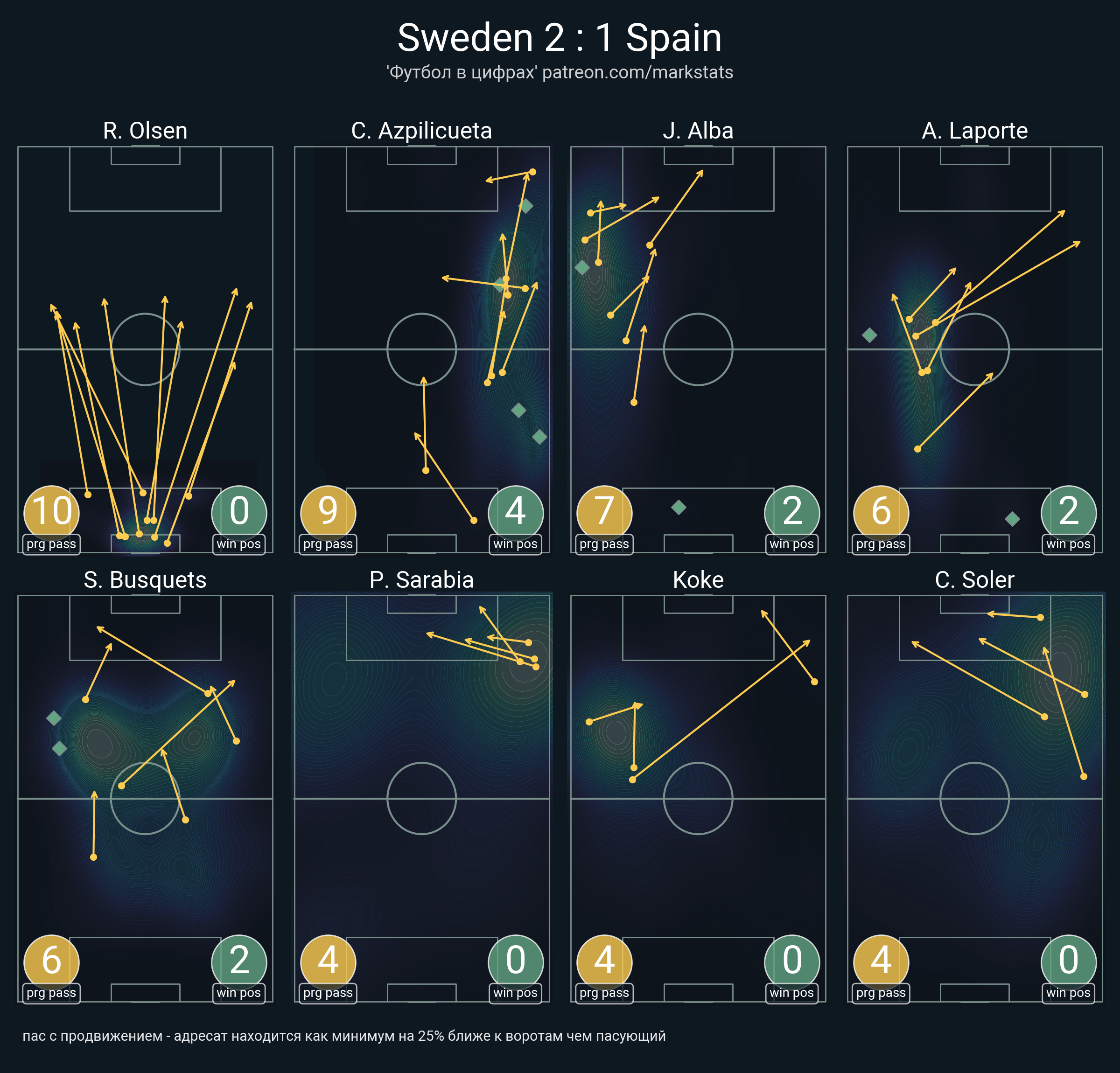 ▪ 14 успешных передач из 20 попыток (1 под удар, 5 на трети соперника)