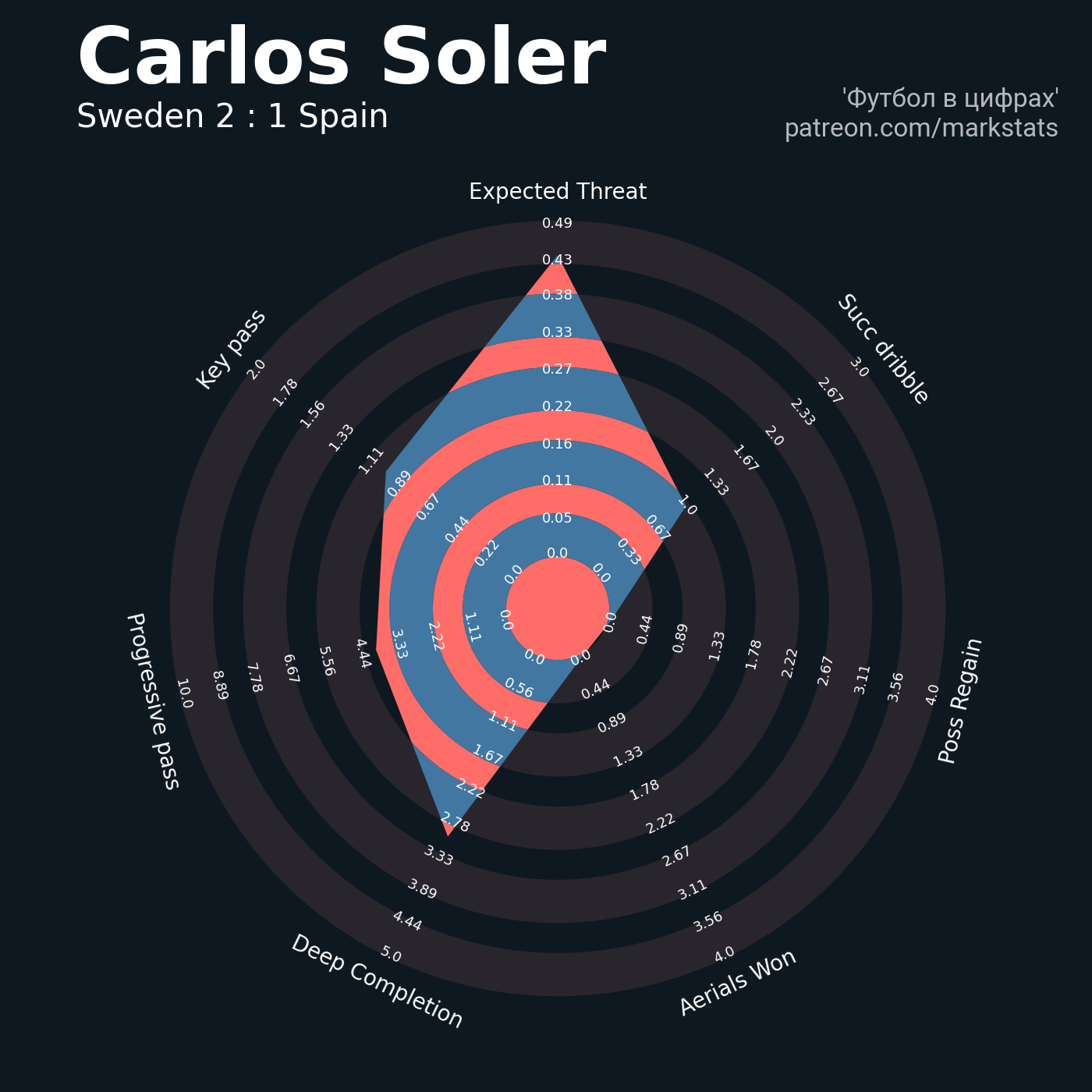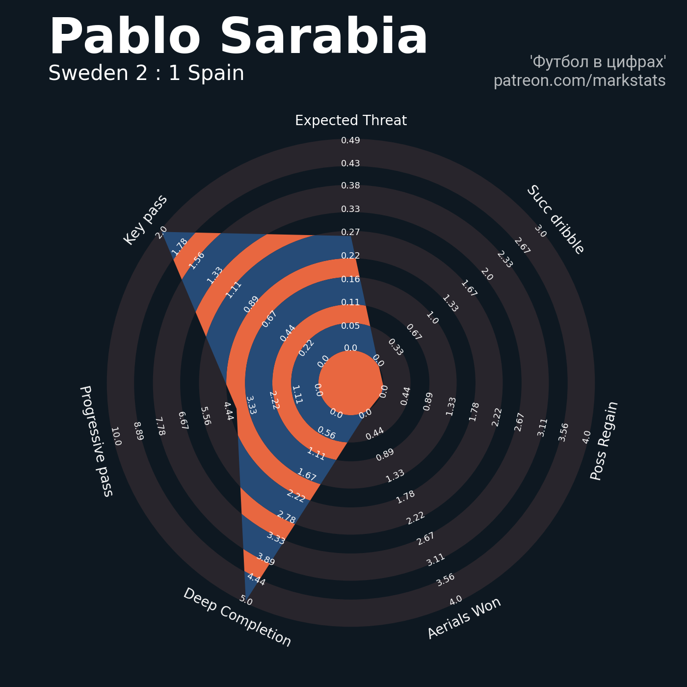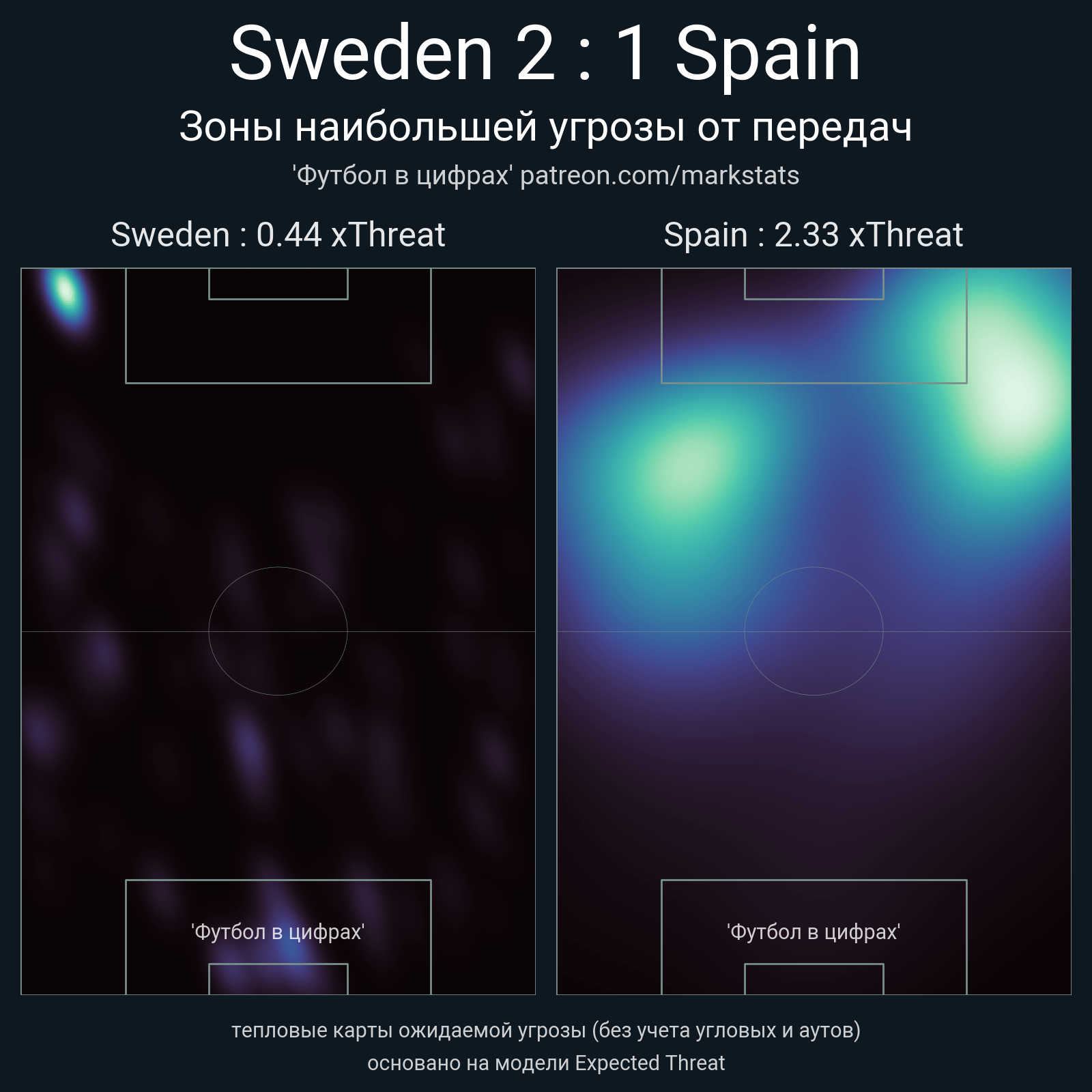 ▪ xThreat без учета угловых: 0.44 - 2.33
