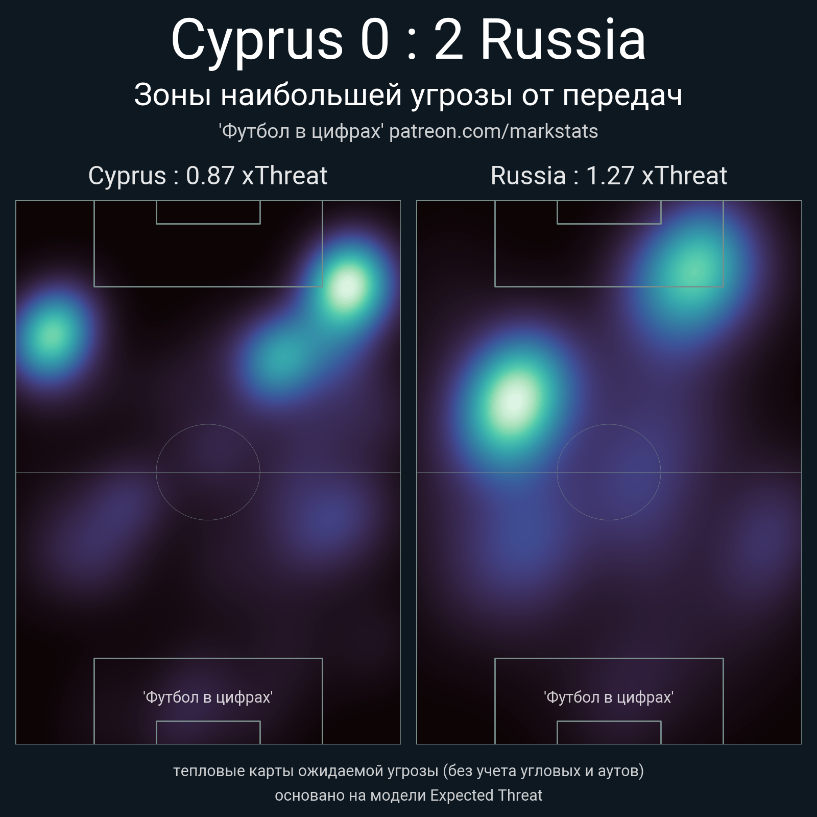 ▪ xThreat без учета угловых: 0.87 - 1.27