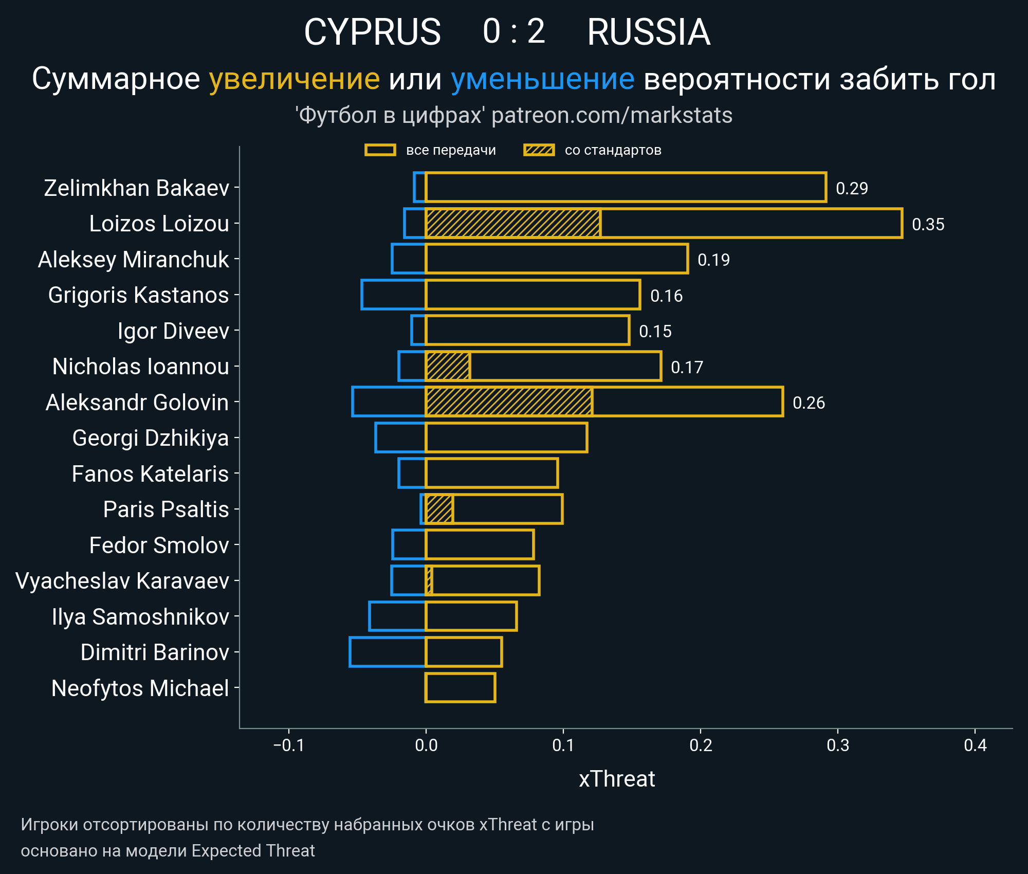 Очки xThreat с игры: