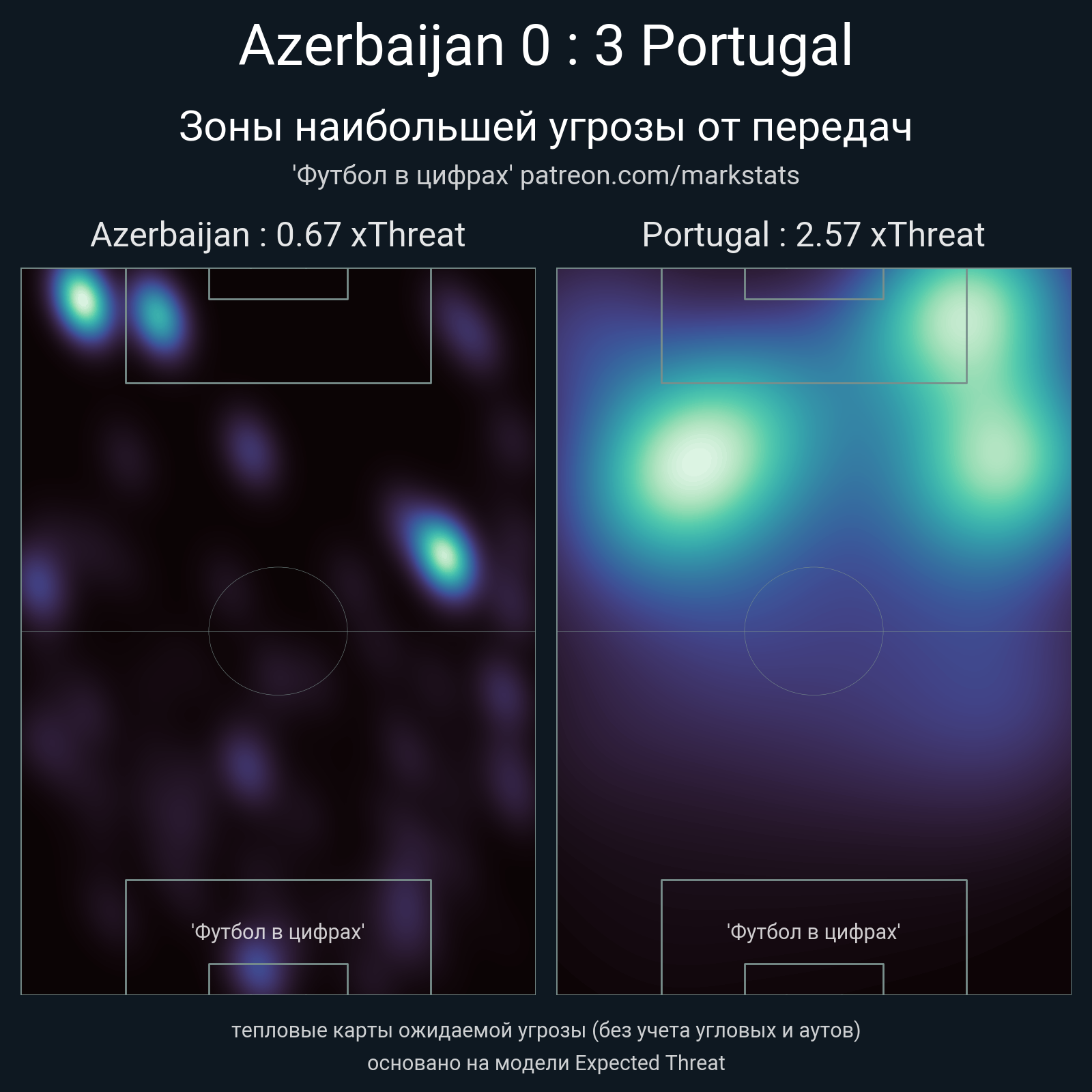 ▪ xThreat без учета угловых: 0.67 - 2.57